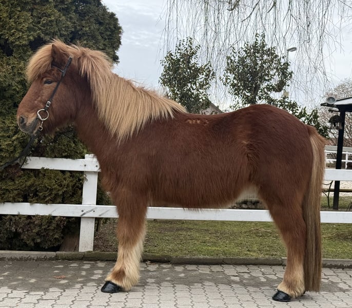 Birtingur frá Miðsitju Gelding, 1.39 m tall Chestnut with a star Four-gaited with abundant tölt AKU including X-rays available ✅ Shoed, dewormed ✅ V: Roði frá Múla 8.07 (Ext 8.30, Re 7.84) as a four-gaited, tölt 8.5‼️ VV: Orri frá Púfu 8.34 (Ext 8.08, Re 8.61) as a four-gaited, tölt 9.5‼️ M: Björk frá Múla 7.99 (Ext 7.93, Re 8.06) as a four-gaited, tölt 9.0‼️ MV: Viðar frá Viðvík 8.31 (Ext 7.99, Re 8.63) tölt 9.0‼️ Birtingur is an absolutely reliable horse – in daily handling, in the riding hall, on the lunge circle, and confidently and calmly in the field. He impresses with his balanced character and his calm, honest nature. His temperament is extremely pleasant, he is well-trained, and can be ridden via voice commands. He has four clearly distinct gaits, with his very easy-to-ride tölt being particularly noteworthy. It is smooth, easily accessible, and so straightforward that even riders with limited experience can tölte him confidently. One could say Birtingur possesses nearly endless tölt, which brings immense joy. Thanks to his secure demeanor, Birtingur is the ideal family horse or beginner’s horse – suitable for children as well as adults, even for dad. He always provides his rider with a high level of safety and confidence, making every ride a relaxed experience. We are aware that, for a gelding, pedigree is not as relevant for breeding purposes. However, we still wish to mention Birtingur’s consistently high-tested lineage, as it clearly demonstrates what an incredible riding horse he is. An utterly honest, relaxed gelding for all who seek a reliable and comfortable Icelandic horse to ride.