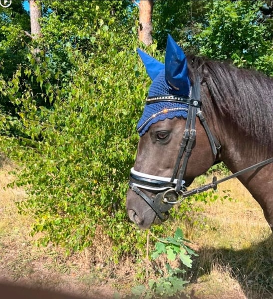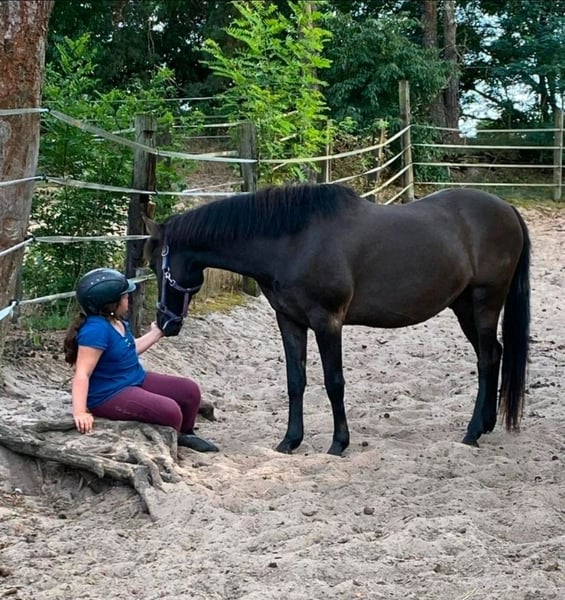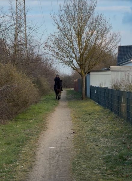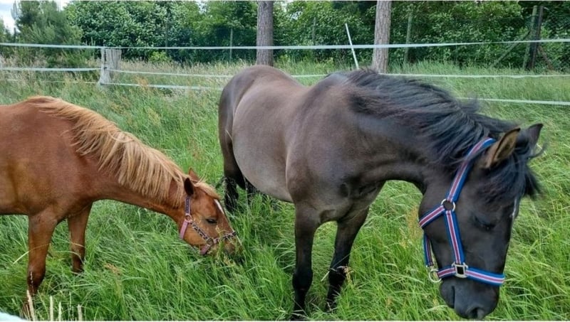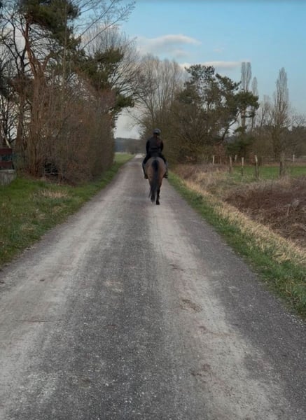 Âne de 11 ans, croisement de Konik, mesurant 1,51 m, à placer entre de très bonnes mains. Notre Shoki aime partir en balade et est très courageux aussi bien seul qu’en groupe. Il connaît les routes principales et est habitué au brouhaha. Sur le manège et en carrière intérieure, sa tête de poney peut parfois dépasser, mais avec un cavalier expérimenté qui sait bien se faire respecter, il répond volontiers aux aides et reste bien en selle. Avec des débutants, il peut s’arrêter facilement. En extérieur, il est comme une assurance vie et veille sur son cavalier. Typiquement, très confortable à la selle. Shoki vit chez nous en paddock et sur la pâture. Il connaît aussi la box, qu’il apprécie parfois brièvement. En main, il est aussi sage et courageux, mais peut aussi montrer sa tête de poney lorsqu’il voit quelque chose de délicieux. Avec une personne ferme et dominante, il n’y a aucun problème. Nous souhaitons une personne expérimentée, qui pourra le faire vivre en paddock et l’emmener en balade régulièrement. Il n’est pas adapté aux enfants ni pour la compétition. Avec les autres chevaux, il est très gentil et facile chez nous. Pour des raisons personnelles, il doit partir uniquement dans des mains de confiance.