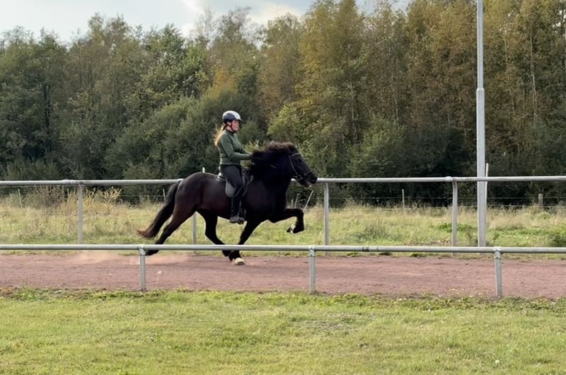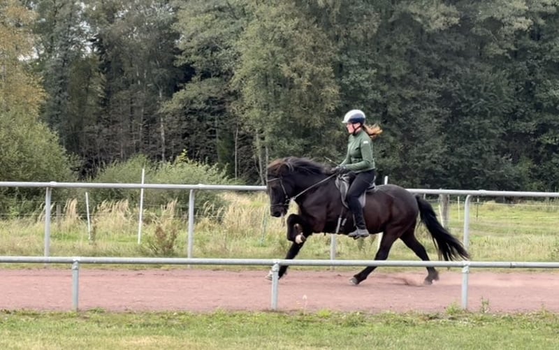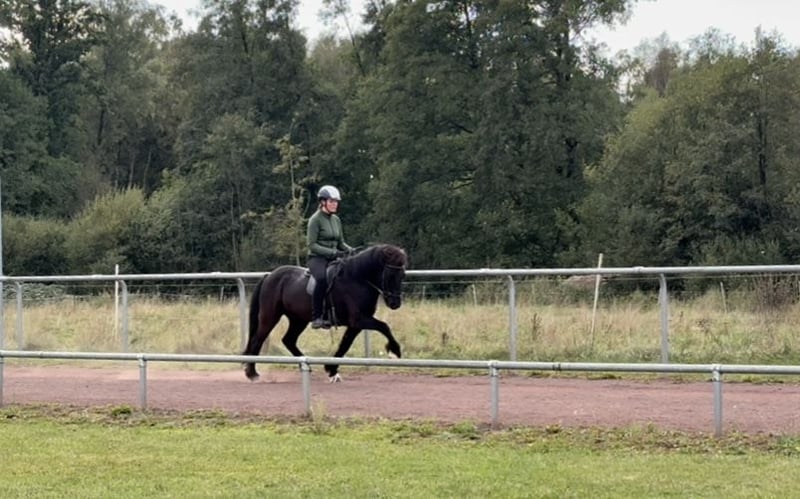 Morgan frá Fornhaga II *2013 in Iceland 1.44m Sire: Bastían frá Litlu-Brekku (FIZO 7.78) Dam's Sire: Kvistur frá Skagaströnd (FIZO 8.58, Honorary Prize for Offspring) Dam: Harka frá Akureyri (FIZO 8.13) Morgan is an absolute gentleman and simply a treasure! He always wants to do everything right and puts in an incredible amount of effort to please the rider. In addition to his excellent character, Morgan also has 5 very stylish gaits. All gaits are easy to ride while maintaining good form, at any speed, and with elegant movements. The tölt can sometimes be a bit stiff, but it can be easily loosened. He is very well trained, responds well to aids, and is very sure-footed in the terrain. With a diligent temperament and calm nature, Morgan always goes as fast as the rider wants. Due to Morgan's sensitive and quick response to the rider's aids, he is not suitable for inexperienced riders despite his dream character. However, pretty much anyone can ride him safely. A great horse for (youth) sports, as a luxury leisure horse, or for trainers' licenses or badges. Morgan is a fantastic all-rounder and does just about anything for his person. Unfortunately, Morgan has developed a slight eczema, which is why he is being sold below his actual value. With a blanket and some care, this is hardly noticeable. Price category D: €15,000 - €20,000 Location: 29614 Soltau Due to increased riding tourism and to avoid this for the horses' sake, I charge a flat fee of €40 per appointment. This will, of course, be refunded upon purchase.