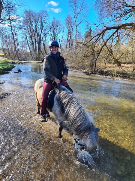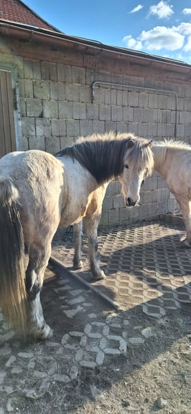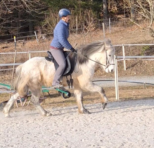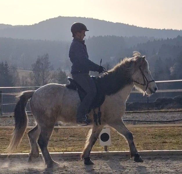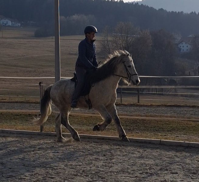 Hübscher Isländerwallach mit viel Geländeerfahrung und ausgeglicherner Art! Herjólfur frá Hestheimum ✨ geb. 04.08.2012 in Island | Grauschimmel | ca. 1,42 m | 4-Gänger Standort: 95472 Schöfweg (zwischen Deggendorf u. Passau) Herjólfur ist ein freundlicher, beziehungsorientierter Wallach, der seinem Menschen gerne begegnet und eine echte Beziehung aufbaut. Er zeigt sich aufmerksam, kooperativ und arbeitet sowohl unter dem Sattel als auch vom Boden aus gerne mit. Ganglich verfügt er über sehr viel Tölt mit angenehm weicher Bewegungsqualität. Auch sein Galopp ist butterweich und sehr gut zu sitzen. Er verfügt über klar getrennte Gänge. Hery lässt sich gut über den Rücken und feine Gewichtshilfen reiten und möchte klar, strukturiert und bewusst geritten werden. Etwas Erfahrung im Töltreiten ist daher von Vorteil. Herjólfur hat ein mittleres Temperament – aufmerksam, ohne nervös zu sein. Im Gelände zeigt er sich zuverlässig und ist ein schöner Partner für entspannte Ausritte. Wenn ihn etwas verunsichert, bleibt er stehen und orientiert sich an seinem Reiter. Er wurde im Oktober 2023 aus Island importiert und wird hier regelmäßig zu zweit oder in kleiner Gruppe im Gelände geritten. Auf dem Platz arbeitet er gut mit, braucht jedoch eine aktive Reiterhand. Er ist kein „Selbstläufer“ – man setzt sich nicht einfach drauf und er erledigt alles von allein. Er möchte geritten werden und freut sich über klare Hilfen und Teamwork. Herjólfur ist freundlich, menschenbezogen und kindergewöhnt und kennt außerdem Bodenarbeit, Equikinetik und die Wippe. In der Herde zeigt er sich unkompliziert. Reitergewicht bis ca. 75 kg. Gesundheitlich ist er gut versorgt: – ekzemfrei (steht ohne Ekzemdecke) – im Herbst leichte Sensibilität auf Grasmilben (gut regulierbar) – regelmäßig geimpft, Zähne gemacht – osteopathisch betreut – verladesicher und brav beim Hufschmied – aktuell barfuß bzw. mit Hufschuhen (zuvor Duplos) Herjólfur hatte eine Winterpause und wird aktuell wieder antrainiert. Er kann gerne vorgeritten werden. Ein aktuelle Reitvideo ist vorhanden und wird auf Anfrage gerne versendet. Wir geben ihn aus familiären Gründen unter Wert ab.