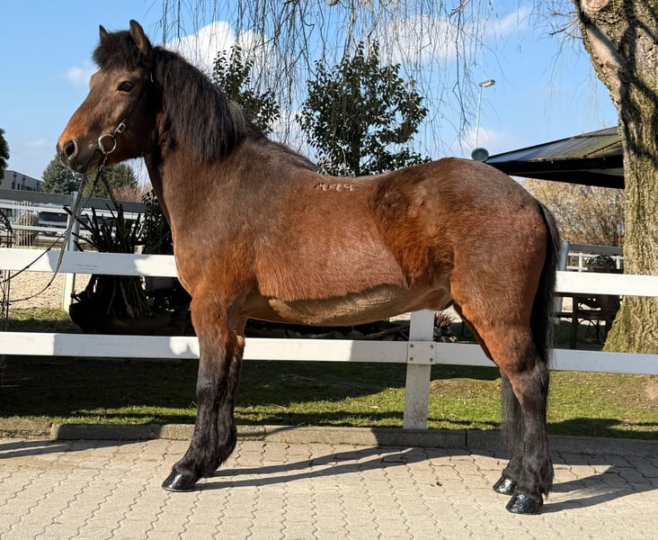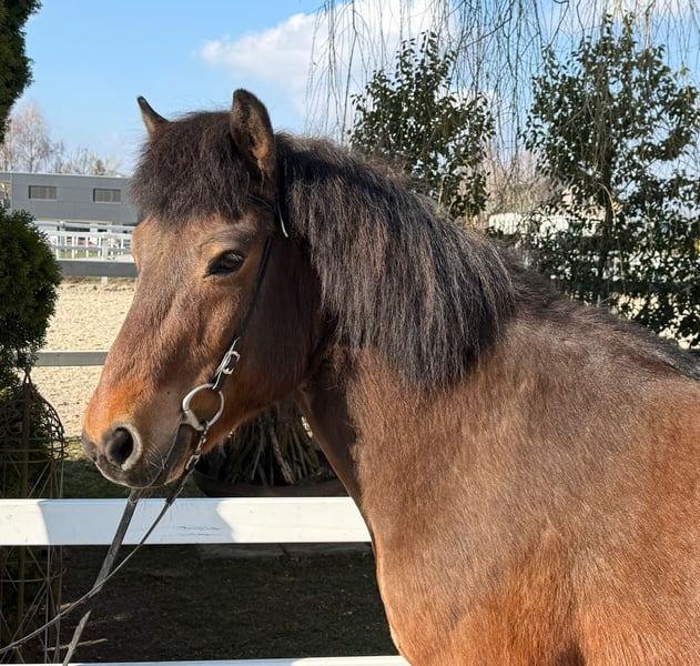 Óttar frá Miðhjáleigu Wallach, 144 cm *2012 in Island Viergänger Brauner Beschlagen und geimpft Zähne frisch gemacht V: Kjerúlf frá Kollaleiru 8,44 (Ext 8,14 Re 8,64)‼️ VV: Taktur frá Tjarnalandi 8,37 (Ext 8,16 Re 8,51)‼️ M: Ótta frá Þingnesi MV: Skírnir frá Skjólbrekku 8,11 (Ext 7,70 Re 8,51) ‼️ Zum Verkauf steht ein beeindruckender brauner Wallach mit großer, kräftiger und dennoch eleganter Statur. Óttar besticht vor allem durch sein außergewöhnliches Wesen: ein absoluter Ruhepol, den so schnell nichts aus der Fassung bringt. Er genießt jede Aufmerksamkeit beim Putzen und zeigt sich im täglichen Umgang stets freundlich, ausgeglichen und menschenbezogen – ein echtes Verlasspferd mit einem Charakter aus Gold. Unter dem Sattel überzeugt Óttar mit einem nahezu perfekten Temperament. Er ist weder übermotiviert noch triebig, sondern ein super verlässliches Pferd, das seinem Reiter mit viel Gelassenheit begegnet. Fehler verzeiht er großzügig und reagiert stets ruhig und besonnen, wodurch er besonders auch weniger erfahrenen Reitern ein gutes und stets sicheres Gefühl vermittelt. Seine Grundgangarten sind groß und ausdrucksstark, fast wie bei einem Großpferd. Besonders hervorzuheben ist sein taktklarer, flüssiger und sehr einfach zu reitender Tölt, der auch weniger geübten Töltreitern viel Freude bereitet. Óttar ist bestens ausgebildet und zeigt sich routiniert in der Halle, auf dem Platz, auf der Bahn sowie im Gelände. Durch seine hervorragende Gangverteilung und sein gefestigtes, freundliches Wesen ist er sowohl für ängstliche Reiter, Kinder und Jugendliche als auch für ambitionierte Freizeitreiter bestens geeignet. Auch wer sich auf Kursen weiterentwickeln oder erste Turnierluft schnuppern möchte, findet in ihm einen zuverlässigen und motivierten Partner. Er ist absolut herdentauglich und aktuell in einer Paddockbox zu zweit untergebracht. Ein Pferd zum Verlieben – für alle, die einen sicheren, ehrlichen und vielseitigen Partner suchen. Wer sich selbst von Óttar überzeugen lassen möchte, ihn kennenlernen und probieren will kann dies gerne nach Absprache in A-5221 Lochen am See tun.