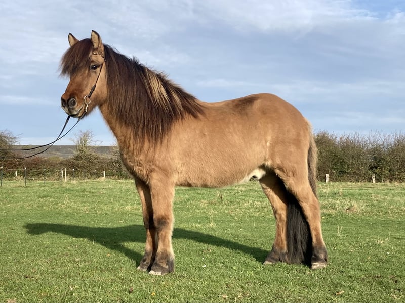 Vorboði ist ein sehr großer (Stm. ca. 143 cm) und dabei kräftig gebauter 15j. Wallach, der mit seinem dicken Behang und dem stabilen Gebäude so aussieht, wie man sich ein Islandpferd vorstellt. Er ist wirklich richtig knuffig! Vorboði ist ein Pferd für die ganze Familie: er lässt sich absolut brav reiten und möchte immer gefallen und alles richtig machen. Dabei spielt es keine Rolle, ob man ihn dressurmäßig auf der Bahn reitet oder mit ihm durchs Gelände streift. Das ist seine große Stärke, denn er ist dort absolut sicher und unerschrocken und lässt sich sowohl allein als auch in der Gruppe reiten. Er ist weer ängstlich noch schreckhaft. Da er aber eine gute Grundausbildung genossen hat, macht er auch bei der Platzarbeit viel Spaß und er ist ein leichtrittiges Pferd, das schön die Reiterhilfen annimmt. Vorboðis Naturtölt ist ein Traum, er töltet und töltet und töltet und lässt sich butterweich sitzen. Dabei kann er auch fast genauso weich traben. Sein Galopp ist etwas gelaufen, aber dennoch ordentlich im Viereck zu reiten und im Gelände natürlich sowieso. Sein Temperament ist sehr angenehm. Er geht immer vorwärts, wenn man es möchte, aber lässt sich jederzeit regulieren. Man muss ihn also weder viel treiben noch zurückhalten. Vorboði ist ein echtes Verlasspferd und ein Freund fürs Leben und die ganze Familie. Wegen seiner Rittigkeit wäre es für ihn jedoch schön, wenn der Reiter ein gewisses Maß an Gleichgewicht hätte und nicht grobmotorisch einwirkte, das würde diesem wundervollen Pferd weniger gerecht werden. Er ist kontinental gezogen und gesund und ekzemfrei. Eine aktuelle Aku inkl Röntgen liegt vor.