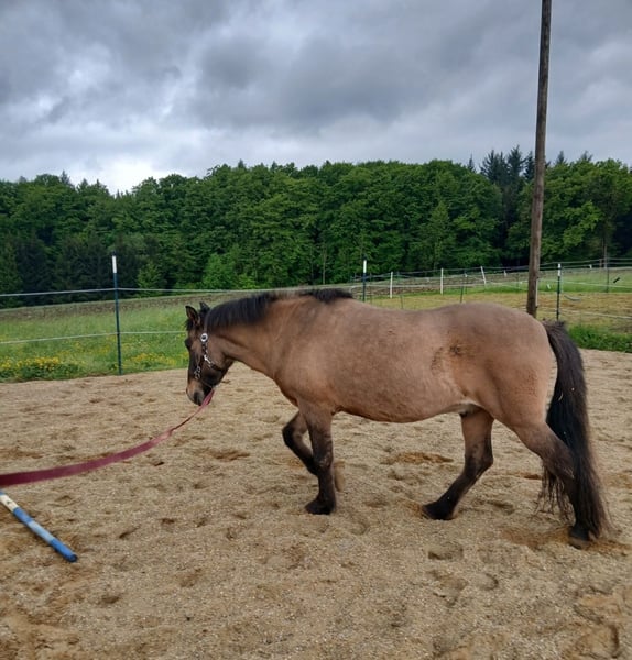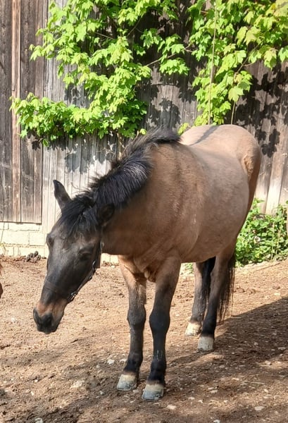 Due to a reduction in stock, our 25-year-old Icelandic gelding is seeking a loving new home. He is only conditionally rideable and is therefore better suited as a leisure, companion, or therapy horse. His calm, balanced nature makes him absolutely child-friendly and fearless – ideal for equine-assisted therapy as well. He is an eczema sufferer and requires an eczema blanket during the appropriate seasons. His size is approximately 1.40 m. He is familiar with various keeping methods, such as open stables and overnight box stalls. In a herd, he proves to be very social: - More subordinate with larger horses - Dominant with Shetlands, but always friendly and well-mannered. We are looking for a quiet, suitable home where he will continue to receive loving care.