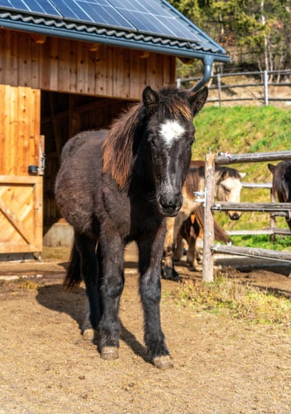 Myrkur ist ein schicker 1,5 Jahre alter Isiwallach (im Dezember 2025 kastriert), welcher 5gängig veranlagt ist. Er besticht nicht nur durch sein Aussehen (Rappe mit einem weißen Stern), sondern auch durch seine tollen Gänge. (Fohlenbeurteilung: 7,95) V: Midas fra Jelshøjen M: Bryndís von Isdal Myrkur ist gechipt (besitzt volle Papiere), wird regelmäßig entwurmt und geimpft, kennt den Hufschmied, den Tierarzt und auch das Hänger fahren ist kein Problem. Er wird artgerecht aufgezogen und lebt in einer Hengstherde am Kirchnerhof im schönen Lungau. Die letzten 2 Sommer verbrachte er auf der Alm. Er kann jederzeit besucht/angeschaut werden. Gerne Sende ich auch ein Video von seiner Fohlenbeurteilung