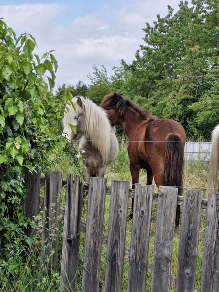 Heamir geboren am April .2022 als Fohlen prämiert Heamir ist ein sehr menschenbezogener und freundlicher Wallach, der im Freilauf überwiegend Tölt zeigt. Er ist viergänger. Da er über viel Tölt und eine sehr gute Abstammung verfügt, könnte ich ihn mir sowohl als Freizeit- als auch als Sportpferd vorstellen. Heamir kennt Spazieren gehen, alleine und mit einem Begleitpferd und zeigt sich dabei verkehrssicher. Er kommt auf Zuruf angelaufen und geht auch auf fremde Menschen von sich aus zu. Altersgemäß ist er noch nicht geritten, kennt jedoch bereits Sattel und Reitpad und lässt sich damit auch vollkommen gelassen über den Reitplatz führen. Generell reagiert er auf neue Dinge mit nur wenig bis gar keiner Scheu. Er lässt sich überall einsprühen, kennt die Fliegenmaske und lässt sich sogar frei auf der Weide scheren.Er ist schmiede- und verladefromm sowie ekzemfrei. Er steht in einer gemischten Herde im Offenstall mit Heu-Fütterung und ganzjährigem Weidezugang.