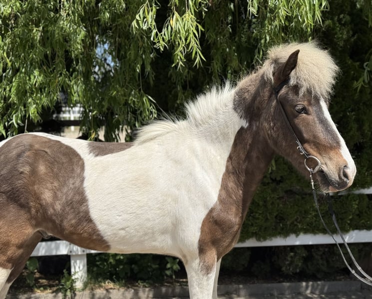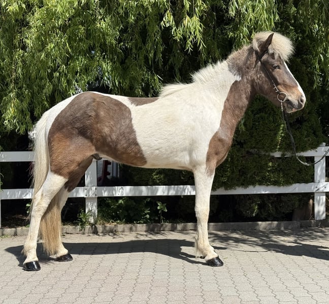 Froður vom Singergut Gelding, currently 1.43m Color: Brown wind-colored pinto *2020 born in Austria eczema-free, healthy✅ shod, dewormed, vaccinated✅ currently four-gaited ridden A true gem is looking for his perfect person! This exceptionally handsome gelding was born in Austria in 2020. He impresses not only with his rare special color (brown wind-colored pinto) but also with his remarkable gait quality and his balanced, friendly character. Naturally polite in handling, curious, fearless, and people-oriented – a true charmer who is ready to start his further training. Particularly noteworthy is his flowing movement, which combines a lot of tölt potential with clear structure & quality in all basic gaits. This gelding has everything it takes to develop into a promising sport horse for youth with further training – he is perfectly suited for children, teenagers, or light adults who value an honest, reliable, and willing horse. Fróður is the all-rounder with a special color focus – this gelding will capture hearts. ❤️ His price is subject to increase with further training. He can be visited and tried out with us in A-5221 Lochen am See by appointment.