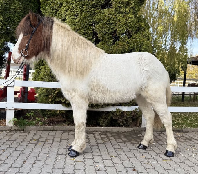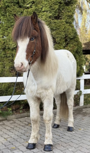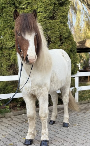 Snær frá Bakkakoti Gelding, 1.38 m Born in 2018 in Iceland Five-gaited, trained in four gaits Color: Brown and white pinto with two blue eyes AKU including X-rays available, teeth recently checked VAT deductible Sire: Vésteinn frá Bakkakoti 8.29 (Ext 8.17, Re 8.35) Dam: Ómur frá Kvistum 8.61 (Ext 8.24, Re 8.85) Dam's Sire: Silja frá Sydra-Skördugili Granddam: Hjálmar frá Vatnsleysu The beautiful Snær is looking for a loving new home. With his long, dense mane, gentle nature, and smooth gait, he is a horse that is truly unique. Snær is an exceptionally well-behaved, reliable, and completely fearless gelding. He is more driven than spunky, always calm, and provides his rider with a high level of security. Thanks to his calm temperament and sensitive nature, he is ideally suited as: A therapy and family horse. He is the perfect riding companion for beginners, re-entrants, or more nervous riders. Trained in four gaits, Snær shows clear potential for sport level C. His gait quality is distinctly separated, rhythmically correct, and comfortable to sit. A horse that is simply a pleasure to ride. Tölt is so easy to ride that even inexperienced riders or children can effortlessly cue it. Snær comes from a high-performance Icelandic horse line, which is reflected in his character and gaits. Snær is an absolute dream horse – a reliable partner with excellent gait quality, suitable for sport, leisure, and therapy. A horse that captures your heart immediately. The handsome gelding can be visited and tested at A-5221 Lochen am See at any time. We are happy to send additional photos and videos via WhatsApp.