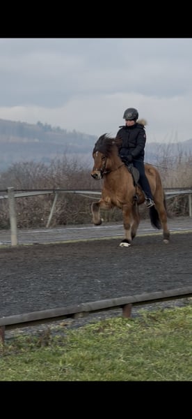 Móinn ist ein achtjähriger, stabil sportlich gebauter Wallach mit einer auffallend hübschen Erscheinung, viel Ausdruck und einer dichten, langen Mähne, die sofort ins Auge fällt. Ein Pferd mit echter Präsenz. Als viergängig gerittenes Pferd bringt Móinn jede Menge Tölt mit, der sich angenehm leicht reiten lässt und dabei ansprechend hohe sowie weite Bewegungen zeigt. Mit leichten Boots fällt es ihm besonders leicht, direkt ins Gleichgewicht zu kommen. Sein Trab zeigt sich schwungvoll mit weiten, ansprechenden Bewegungen, während der Galopp gut gesprungen ist und eine Bergauftendenz aufweist. Ein echtes Highlight ist jedoch sein Schritt: weit übertretend, raumgreifend und taktklar. Dieser „gigantische“ Schritt macht Móinn insbesondere im Hinblick auf Gangprüfungen zu einem äußerst spannenden Kandidaten. Móinn ist fein an den Hilfen, schnell in seinen Reaktionen und aufmerksam gegenüber seinem Reiter. Durch weiteres gezieltes Training bringt er beste Voraussetzungen mit, sich zu einem ansprechenden Turnierpferd zu entwickeln. Gleichzeitig bietet er all das, was man sich von einem gehobenen Freizeitpartner wünscht – sei es ein ausgedehnter Töltritt durch den Wald oder konzentrierte Arbeit auf dem Platz. Genau diese Vielseitigkeit macht ihn so besonders. Im Umgang zeigt sich Móinn absolut unkompliziert und angenehm im Temperament. Er wurde bereits problemlos in der Reitschule unter jugendlichen Reitschülern eingesetzt. Dennoch benötigt er einen Reiter, der sicher und klar an den Hilfen ist. Für reine Reitanfänger ist er nicht geeignet, da er sonst beginnt, eigene Entscheidungen in der Linienführung zu treffen. Móinn ist ein arbeitswilliges, leistungsbereites Pferd, das gefördert und gefordert werden möchte und Freude daran hat, weiter geformt zu werden – ganz gleich, ob mit Blick auf den Turniersport oder als ambitioniertes Freizeitpferd. Seine Ausbildung begann als Jungpferd am GPZ Aegidienberg. Zu Beginn zeigte er Schritt, Tölt und Galopp und lernte im Laufe seiner Ausbildung den Trab, der sich heute in guter Qualität präsentiert. Im Gelände kennt Móinn sowohl das Ausreiten alleine als auch in der Gruppe und zeigt sich dabei stets unerschrocken und zuverlässig. Sein Vater ist der Ausnahmehengst Merkur von Birkenlund, ein extrem erfolgreicher Viergänger und Tölter sowie mehrfacher Weltmeister, der für Qualität, Rittigkeit und beeindruckende Gänge steht. Auch mütterlicherseits bringt Móinn beste Voraussetzungen mit: Seine Mutter Mylla frá Hrauni, eine Tochter des Ehrenpreishengstes Ótur frá Sauðárkróki, dieser überzeugt nicht nur durch seine Vererbungskraft, sondern auch durch herausragende FIZO-Ergebnisse mit 8,5 für Tölt und 9,5 für Pass. Diese Kombination spiegelt sich deutlich in Móinns Gangqualität, seiner Leichttrittigkeit und seinem natürlichen Talent wider. Móinn ist ein Pferd für Reiter, die Qualität, Charakter und Entwicklungspotenzial schätzen. Ob als sportlicher Partner mit Turnierambitionen oder als echtes Luxusfreizeitpferd. Móinn lässt kaum Wünsche offen und wartet auf einen Menschen, der seinen Weg mit ihm weitergehen möchte.