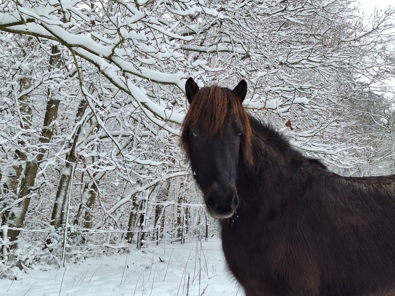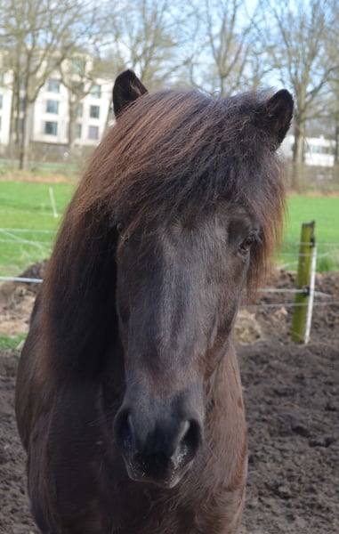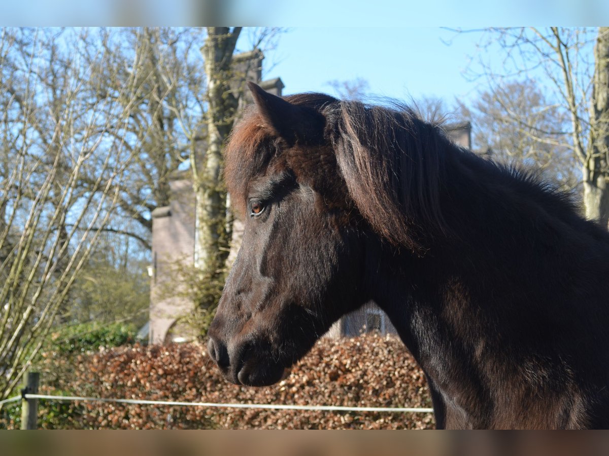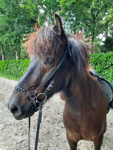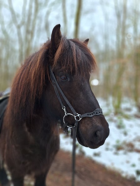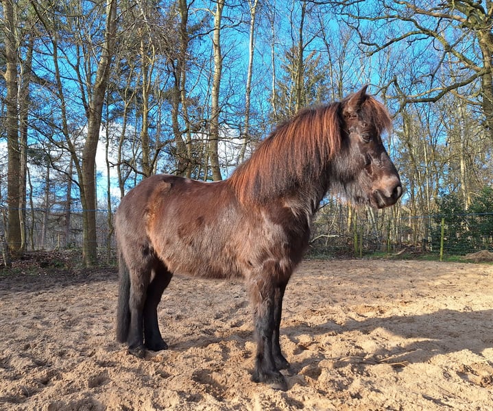 Hrafn ist ein hübscher, fröhlicher, sensibler und freundlicher Rüde im Alter von fast 9 Jahren. Er besitzt ein mittleres Temperament und möchte gerne laufen. Er ist feinfühlig bei den Hilfen, verfügt über vier gut abgegrenzte Gangarten und viel Tölt. Ich vermute, dass er auch einen guten Trab zeigen wird, allerdings ist dieser noch nicht trainiert oder geritten. Sein Widerristhöhe beträgt 1,41 m. Hrafn wird von mir viel im Wald trainiert, kann aber auch gut auf dem Platz oder in der Bahn gearbeitet werden. Ich habe ihn noch nicht in einer Gruppe geritten, aber alleine oder zu zweit unterwegs sein ist kein Problem. Er ist an den Verkehr gewöhnt, ist brav beim Schmied, geht leicht in den Hänger etc. Hrafn wurde 2017 als Fohlen bei der Fohlenprüfung mit einer 8 bewertet und wurde damit damals erster bei den Hengstfohlen. Sein Vater ist der bekannte Trymbill frá Stóra-Ási (8,57) und seine Mutter ist Brekka frá Hólum, eine Tochter von Rökkvi frá Hárlaugsstöðum. Eine liebevolle, arbeitseifrige Stute mit viel Bewegungsdrang. Hrafn ist nicht geeignet für unsichere oder unerfahrene Reiter. Er braucht einen ruhigen Reiter, der ihm gelegentlich Sicherheit geben kann. Ich suche für Hrafn jemanden, der Freude daran hat, mit ihm weiterzuarbeiten und Fortschritte zu machen. Egal, ob du ein (Jugend-)Reiter mit Turnierambitionen bist oder jemand, der einfach nur gerne mit ihm trainieren und Unterricht nehmen möchte – Hrafn ist auf jeden Fall ein interessantes Pferd für dich! Hrafn hat keinen Ekzem und ist bereit für ein neues Abenteuer. Möchtest du ihn kennenlernen? Du bist herzlich eingeladen nach Beetsterzwaag (Friesland). Bei ernsthaftem Interesse kannst du mich per PN oder E-Mail erreichen: feyk1r@hotmail.com.