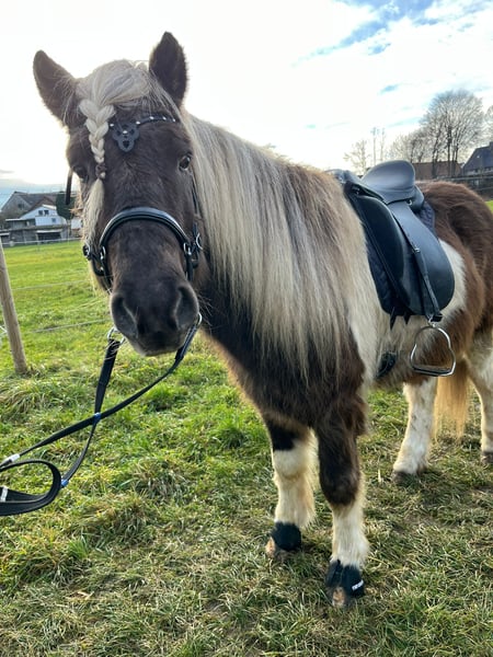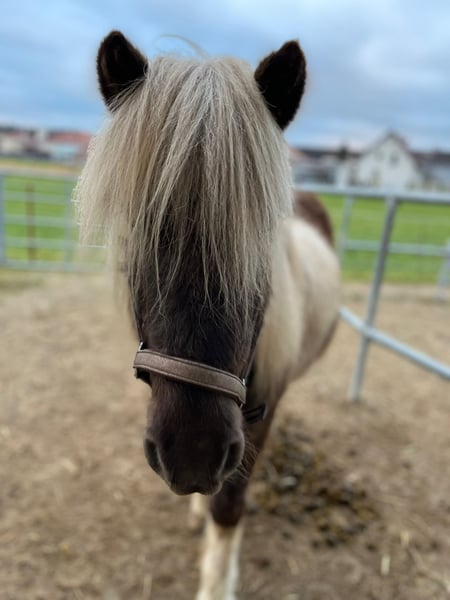 Herzenspferd - Islandpferd, Wallach, 7,5 Jahre. Seltener Windfarbschecke ( ca. 1,44 m). Eher ruhig und wenig Temperament. Sehr bequeme Gänge. Leicht zu reitender taktklarer Tölt. Schmiede- und verladefrom. Eher rangniedrig. AKU vom 10.09.2025 inkl. Spatröntgen vorhanden. Kam Ende Oktober von Island auf einen pferdebetrieb im Bereich Landsberg am Lech. Von dort wurde er verkauft Von dort Ende Oktober als Pferd für Familien, Anfänger und Wiedereinsteiger verkauft. Er ist in der Halle brav und zuverlässig. Im Gelände braucht er jedoch noch einen sicheren Reiter. Kein Notverkauf - nur an 5 -Sterne Zuhause. 35 € pro Proberitt, Anrechnung bei Kauf. Gekauft wie gesehen. Verkauf unter Ausschluss jeglicher Gewährleistung.
