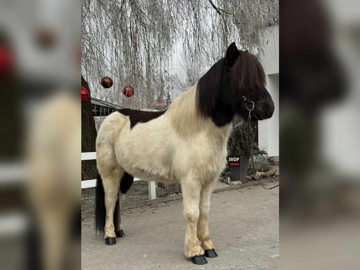 Klaki frá Miðsitju Wallach, 1,45m gross *2016 auf Island viergängig geritten, richtig tolle Gänge Rappschecke mit viel Behang hat bereits Kindererfahrung ✅ AKU inkl. Röntgen vorhanden✅ MwSt. ausweisbar✅ V: Þristur frá Feti 8,27 (Ext 8,14 Re 8,35) VV: Orri frá Þufu 8,34 (Ext 8,08 Re 8,61) M: Kotra frá Flekkudal MV: Otur frá Sauðárkróki 8,37 (Ext 8,05 Re 8,69) Klaki ist ein absolutes Verlasspferd – im täglichen Umgang, in der Reithalle, auf der Ovalbahn sowie zuverlässig und gelassen im Gelände. Er überzeugt durch seinen ausgeglichenen Charakter und seine ruhige, ehrliche Art. Er verfügt über vier klar getrennte Gänge. Besonders hervorzuheben ist sein sehr einfach zu reitender Tölt und sein "Schaukelpferd-Galopp". Tölt ist angenehm zu sitzen, leicht abrufbar und so unkompliziert, dass auch Reiter mit wenig Erfahrung ihn sicher tölten können. Man könnte sagen, Klaki besitzt nahezu endlosen Tölt, der wahnsinnig viel Freude und Komfort bereitet. Sein Galopp ist auch besonders zu erwähnen, denn dieser ist so weich und gut gesprungen, dass auch die Kleinsten diesen mühelos sitzen und reiten können. Dank seines sicheren Wesens ist der schöne Schecke das ideale Familienpferd oder Einsteigerpferd – geeignet für Kinder ebenso wie für Erwachsene bis hin zu Papa. Er vermittelt seinem Reiter stets ein hohes Maß an Sicherheit und Vertrauen und macht jede Reiteinheit zu einem entspannten Erlebnis. Uns ist bewusst, dass bei einem Wallach die Abstammung keine Rolle bzgl. der Zucht spielt. Bei Klaki möchten wir diese trotzdem erwähnen, denn seine hoch geprüfte Abstammung zeigt Schwarz auf Weiß was ein unglaublich tolles Reitpferd er ist. Ein absolut ehrlicher, entspannter Wallach für alle, die ein zuverlässiges und komfortabel zu reitendes Islandpferd zum Genießen und als Lehrmeister suchen. Klaki hat bereits verlässlich Kinder auf sich getragen und ist aufgrund seines geduldigen Wesens auch für den therapeutischen Einsatz geeignet. Wer den schönen Wallach kennenlernen und probieren möchte, kann dies gerne nach Absprache bei uns in A-5221 Lochen am See tun.