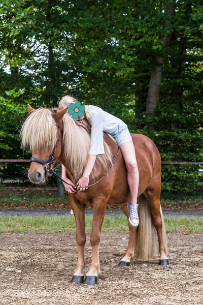 Sproti ist ein neunjähriger Islandwallach, der 2021 aus Island nach Deutschland kam. Er ist Viergänger, mit sehr klarer Gangtrennung. Er hat einen ruhigen taktklaren schreitenden Schritt, sein Trab gehört mit zu seiner Lieblingsgangart und hat eine gute Schwebephase, der Galopp ist gut bergauf gesprungen und lässt sich wunderbar sitzen. Der Tölt ist immer taktklar und bis ins mittlere/hohe Tempo gut abrufbar. Er hat eine überdurchschnittlich gute Gangqualität. Außerdem ist er dressurmäßig gut ausgebildet und macht auch im Viereck eine gute Figur. Er kennt die Halle, Ovalbahn und das Gelände. Mit ihm kann man wunderbar alleine aber auch in der Gruppe ausreiten, er lässt sich jederzeit durchparieren und ist wirklich eine Lebensversicherung im Gelände. Im Umgang ist er absolut brav, er lässt sich ganz artig verladen und ist super artig beim Schmied. In der Gruppe ist er eher rangniedrig, weshalb für ihn eine Haltung mit einer ad libitum Fütterung am besten ist, so hat er die Möglichkeit über den Tag verteilt genügen Fresszeiten zu bekommen. Er steht im Offenstall in einer Wallachherde. Er hat Turniererfahrung und in den leichten Prüfungen V5 und T7 auch einige Platzierungen, letzes Jahr sind wir in der V2 und T3 gestartet, auch in der V2 konnten wir schon erste Erfolge verbuchen. Allerdings ist das Turnierreiten nicht seine Lieblingsdisziplin, weshalb ich mir für ihn gerne jemanden wünsche, bei dem das Turnierreiten nicht im Vordergrund steht. Er hat ein eher ruhiges bis mittleres Temperament. Er ist wirklich ein Traumpferd, für jemanden der sich ein Pferd mit sehr guter Gangqualität und Spaß im Alltag wünscht. Für den großen Sport fehlt ihm etwas das Selbstbewußtsein.