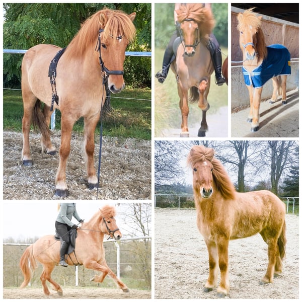 Grand hongre avec beaucoup de tölt - 8 ans, 1,52 m, palomino - Expérimenté en extérieur, manège, carrière et oval - Déjà participé à plusieurs randonnées - Bon cheval de loisir pour accompagner un cavalier - Connaît le travail sans selle - Tempérament moyen, toujours à réguler - Le tölt est son allure préférée - Connaît différents cavaliers - Monte immédiatement dans chaque van - Ferré - Rang moyen; connaît les harem de hongres et les groupes mixtes Les accessoires peuvent également être achetés, tout comme le transport. Échange éventuellement envisageable si vous souhaitez vendre un autre cheval.