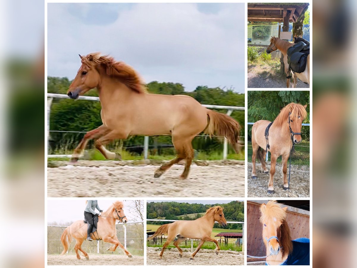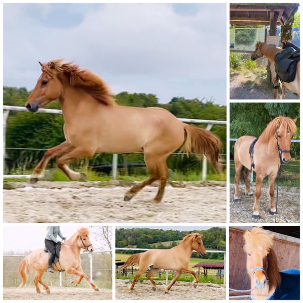 Riesiger Wallach mit viel Tölt - 8 Jahre alt, 1,52m groß, Falbe - Geländeerfahren, Halle, Platz, Ovalbahn - war schon auf mehreren Wanderritten - ist öfter Führpferd für Handpferd - kennt Reiten ohne Sattel - mittleres Temperament - fein an den Hilfen, geht immer fleißig vorwärts - Tölt ist seine bevorzugte Gangart in jedem Tempo - kennt unterschiedliche Reiter - kein reines Anfängerpferd - Steigt sofort in jeden Hänger - schmiedefromm - mittel vom Rang; kennt Wallachherde und gemischte Herde mit Stuten - je nach Standort braucht er evtl. zeitweise eine Ekzemdecke; nur empfindlich an der Bauchnaht - jährlicher Zahnarztcheck - Transport kann organisiert werden - angepasster Sattel kann ebenfalls erworben werden