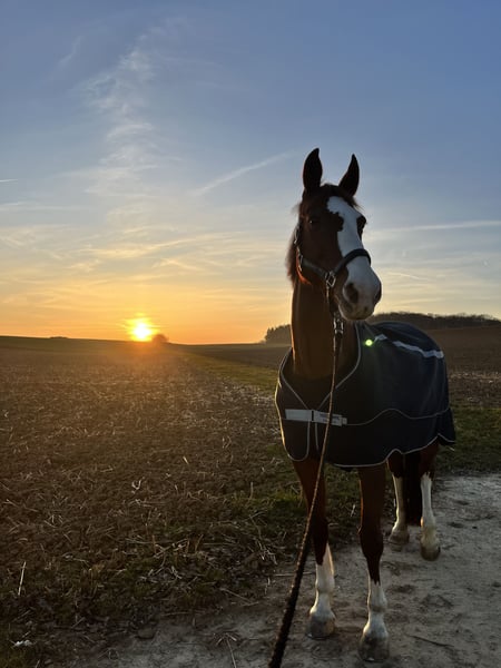 Peggy Sue ist eine wunderschöne Fuchsstute mit einem Herz aus Gold. Sie wird am 01.01.2026 17 Jahre alt und wünscht sich nichts mehr als einen Menschen fürs Leben. Sie ist eine sensible, feinfühlige und zugleich dominante Stute, die ihrem Menschen loyal folgt, sobald sie Vertrauen gefasst hat. Peggy Sue testet – aber wer ihr mit lieber Konsequenz, Ruhe und Klarheit begegnet, gewinnt eine Partnerin mit Herz und Seele. Harter Druck ist nichts für sie, eine sanfte, faire Hand dafür umso mehr. Im Gelände ist sie zuverlässig und gibt ihrem Reiter Sicherheit – sowohl alleine als auch in der Gruppe. Sie ist in allen drei Grundgangarten angenehm zu reiten, hat Freude an Bodenarbeit, Longenarbeit sowie an kleinen Sprüngen. Derzeit steht sie nicht im aktiven Training, kann aber bei erfahrenem, konsequentem Umgang problemlos wieder aufgebaut werden. Gesundheit: Peggy Sue hat einen diagnostizierten Knorpeldefekt im linken Hinterbein, der aktuell keinen Einfluss auf ihr Wohlbefinden oder ihre Bewegung hat. Ansonsten bestehen keine gesundheitlichen Einschränkungen. Sie ist regelmäßig geimpft und entwurmt, wird vorne beschlagen, war beim Zahnarzt sowie bei der Physiotherapie. Haltung: Aktuell steht sie in einer Paddockbox, in der sie sich sehr wohlfühlt. Im Sommer durfte sie täglich auf die Koppel, im Herbst/Winter bei angemessenem Wetter. Auf der Koppel steht sie am liebsten mit einem Partner (Wallach oder Stute). Wichtig: Peggy Sue steht nicht für den Schulbetrieb oder für Händler zur Verfügung. Sie ist ausschließlich für den Freizeitbereich gedacht. Kein Notverkauf – Platz geht vor Preis! Schweren Herzens trenne ich mich von ihr, da sie sich von mir selbst nur schwer reiten und longieren lässt – dies liegt nicht an ihr, sondern an mir. Von anderen Reitern akzeptiert sie dies nach kurzer Kennenlernphase gut. Sie möchte testen – doch wer ihr den Weg klar und fair weist, wird mit Freude, Motivation und Loyalität belohnt. Um Reittourismus zu vermeiden, berechne ich für das Probereiten 25 €, die selbstverständlich beim Kauf angerechnet werden. Preis: 3.500 € VB ✨ Wenn du genau so jemand bist, der zuhört, versteht und mit Herz führt – melde dich. Für Peggy Sue suche ich einen Platz fürs Leben. 💛 Videos können gerne auf Nachfrage geschickt werden.