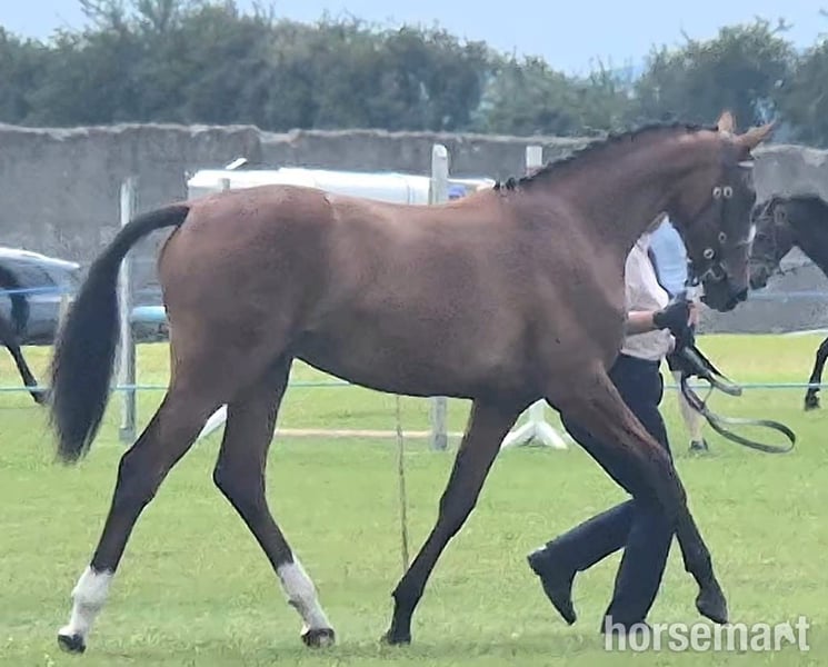 Pouliche captivante présentée à Balmoral, RDS, All Ireland, également montrée professionnellement lors de concours locaux et nationaux. Pouliche facile, confiante et bien équilibrée, avec un mouvement élastique, en avant, montante, avec trois allures dynamiques. Rare opportunité d’acquérir une pouliche élégante, moderne et raffinée, dotée d’un potentiel sérieux pour la compétition de haut niveau. Extrêmement calme à la maison, mais capable de faire sensation lorsqu’elle sort, le sang olympique coule dans ses veines ! Conforme et saine, prête à tout contrôle vétérinaire. Soigneusement élevée avec l’aide de spécialistes en nutrition de premier ordre, depuis le stade de foal jusqu’à celui de yearling, avec vaccinations, vermifuges et ferrage réalisés avec soin. Un plaisir absolu à travailler, elle n’est vendue que parce que j’attends une opération avec une longue période de rééducation, donc elle a l’habitude d’un environnement de qualité et il en faut un aussi exceptionnel pour elle. Actuellement mesurée à 1,55 m (16.1 hh), elle dépassera facilement 1,70 m (16.2+ hh). Fille de Billy Zeus, issue de For Pleasure, avec une lignée maternelle et grand-maternelle de compétition jusqu’à 160, combinant Dutch Capitol X Chellano Z. Sa mère, Lislan Ruby, possède les meilleures lignées irlandaises de saut d’obstacles : Maltstriker x Cruising x Clover Hill, avec de nombreux descendants en tête des ventes, qui ont ensuite concouru dans le monde entier. Parmi eux, son frère Uccello Libero 150 Zoe Mielenza (USA), Carrabeg Enigma 130 Katie Derwin (IRL), sa première mère, Lislan Flamenco 140 Sunniva Aspestrand Sunde (NOR), Lislan Diardo 140 Jason Smith (SUI). Sa deuxième mère, Music Hall Cruise 160 (Conor Swail, IRL), Lislan Rockenroll CIC3* (Quinton George, RSA), et sa troisième mère, Iniskea II 160 (Robert Bevis, GBR). Réservé aux acheteurs sérieux, issus de projets de haut niveau, pour une pouliche exceptionnellement prometteuse. Si vous souhaitez faire sensation, arrêtez de défiler – vous l’avez trouvée ! Tout est visible si vous pouvez vous rendre à l’écurie. Située dans le comté de Mayo, Irlande. Expédition internationale possible, veuillez nous contacter pour un devis.