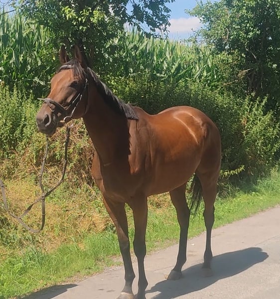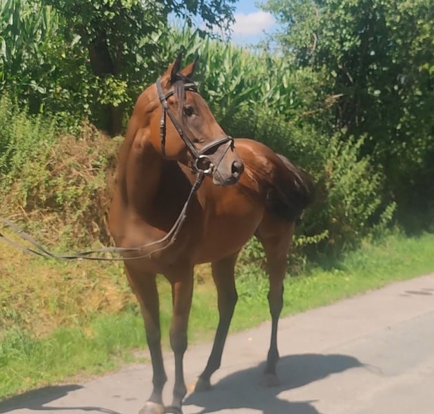 Extremely stylish mare with a wonderful, affectionate character. A horse that immediately knows how to win hearts. Always friendly, whether with her carrot giver or her horse friends. Familiar with trucks, tractors, etc. In every situation, she strives to present herself confidently and calmly. In the herd, she is low-ranking and always the steadying influence. Overall, a horse that you simply have to love. We are selling her into friendly hands, preferably with horse companionship and turnout. If needed, she can be sold with complete new equipment for a small additional cost. Transport can be organized. Inquiries should be made exclusively by phone at 01774289729. Written inquiries will not be answered.