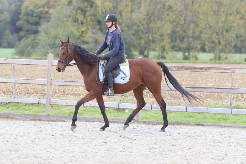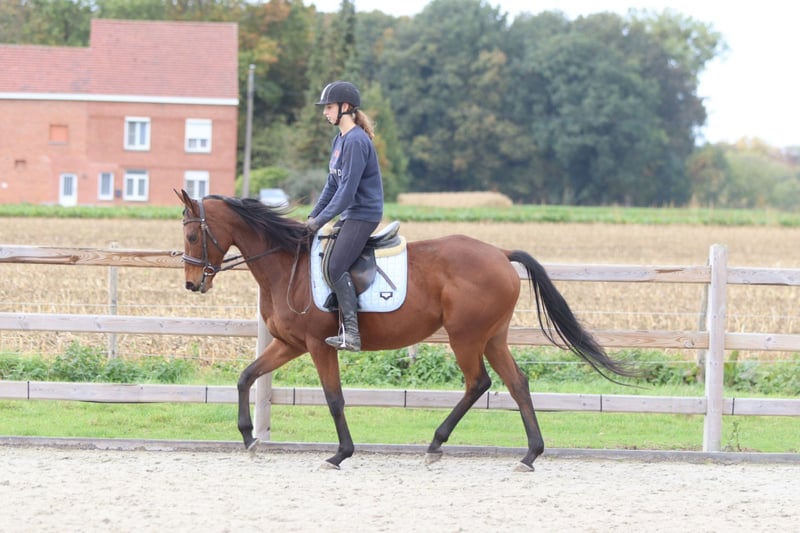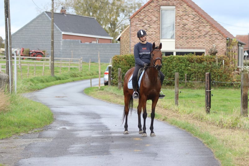 ✨ Lady is a sweet and reliable mare with a cooperative temperament. • 🐎 Age: 8 years • 📏 Shoulder height: 1.60 m (approximately 16.1 hh) • 🐴 Character: well-behaved and easy to handle ✅ Calm and obedient under saddle ✅ Willing to jump ✅ Suitable for outdoor rides ✅ Children can bring her to and from the pasture without any issues ✅ Gets along well with other horses 📞 More info: +32 475 68 22 43 🎥 For videos, please visit our website (ask for the link).