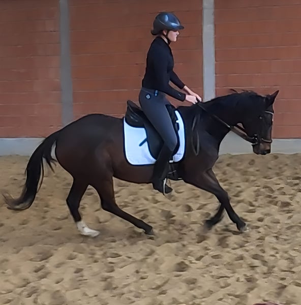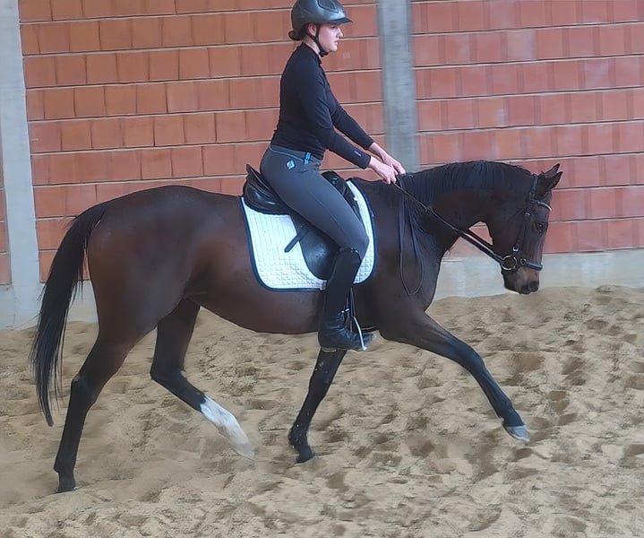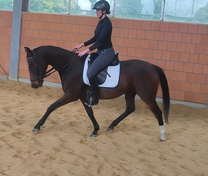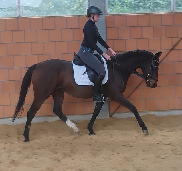Beauty combined with great rideability. This sweet 7-year-old mare, approximately 165 cm tall, is the ideal horse for girls, always managing to bring a smile to her rider's face. She is a dream to sit on and very easy to put on the bit. Her wonderful conformation and exterior make her simply likable. She moves with elasticity and a pleasant, positive swing. Therefore, we could also envision her being used in dressage. Even with less experienced riders, she always tries her best. She is familiar with tractors, trucks, etc. If needed, she can be sold with a complete new set of equipment for a small additional fee. Transport can be arranged. A veterinary pre-purchase examination can also be conducted by your own veterinarian, including X-rays and blood tests. We look forward to your call at 01774289729. Written inquiries will NOT be answered. We believe that those who are genuinely interested will call. All others are kindly asked to refrain from contacting us.