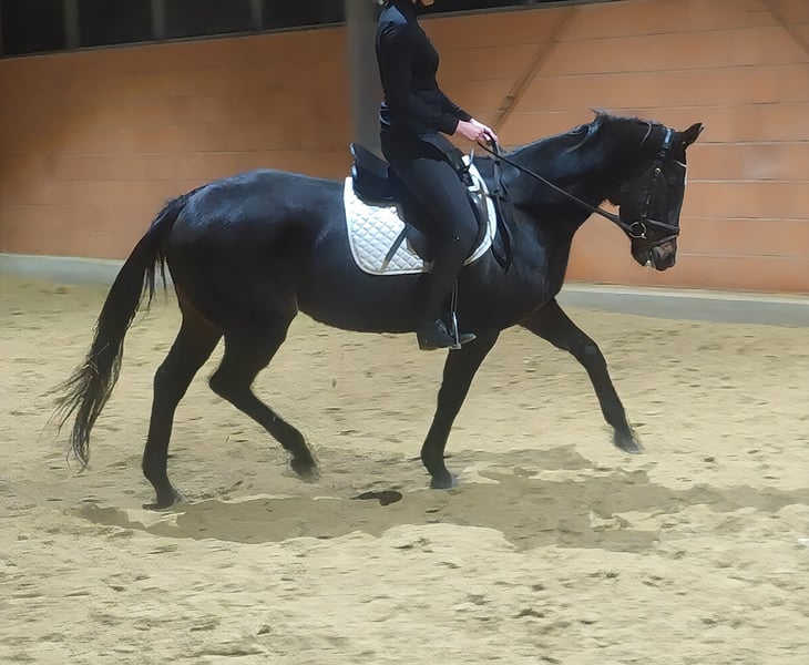 Schicke 8 j ca. 165 cm große Rappstute welche im Sport bereits Erfolge für sich verbuchen konnte. Komfortabel und angenehm zu reiten. Hier wurde sie auch schon von weniger versierten Reitern geritten wobei sie sich zuverlässig zeigte. Für den Sport, die gehobene Freizeitreiterei oder eventuell auch für einen ( vernünftigen) Schulbetrieb interessant. Bei Bedarf gegen geringen Aufpreis mit kompletten neuen Zubehör abzugeben. Transport kann organisiert werden. Tierärztliche Ankaufsuntersuchung kann auch durch Ihren eigenen Tierarzt inklusive Röntgen und Blutuntersuchung erstellt werden. Wir freuen uns auf Ihren Anruf unter 01774289729. Schriftliche Anfragen werden Nicht beantwortet. Anrufe mit unterdrückter Nummer werden automatisch abgewiesen.