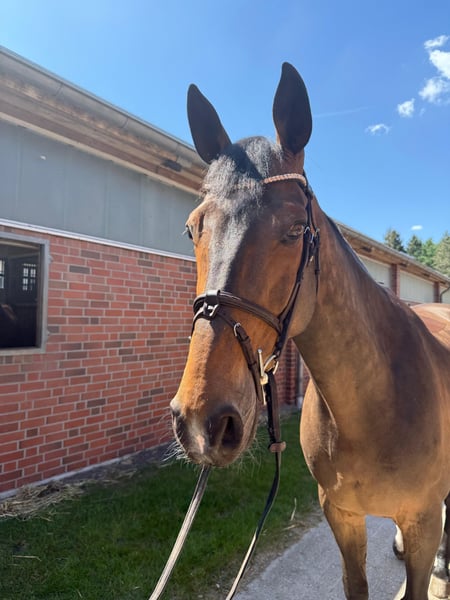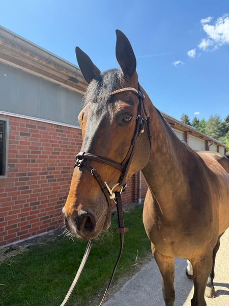 Beautiful, easy 11-year-old gelding — an ideal confidence booster for a rider aiming for up to 4'1" (1.25 m). Junior is a very kind and straightforward horse, always providing a positive experience in the arena. He is brave, careful, and easy to ride both on the flat and over fences. The type of horse everyone enjoys working with—simple to handle, travel, and manage in every aspect. He has been successfully competed up to 4'5" (1.35 m) and is ready to continue competing at this level or simply offer someone enjoyable, safe riding at home and at smaller shows.