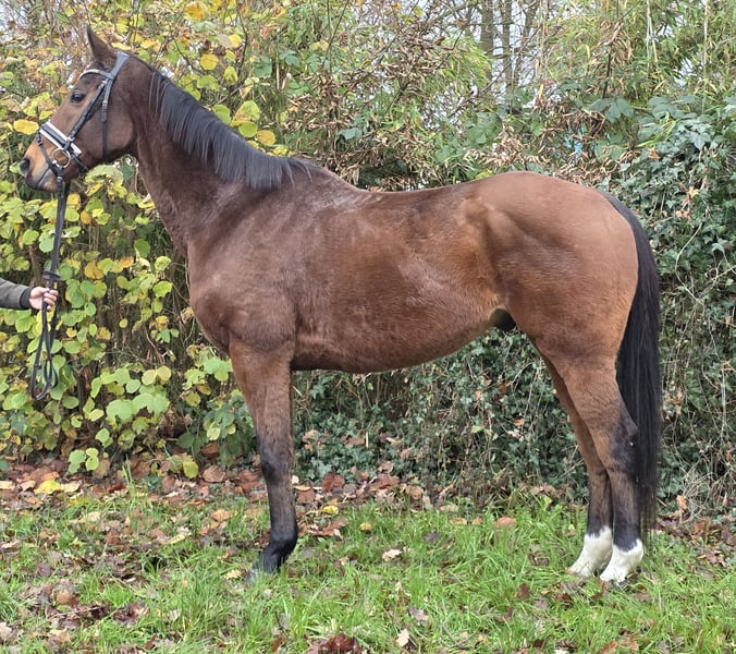 Chief is approximately 16.1 hh Irish gelding, a true all-rounder suitable for all disciplines of riding. This young horse has three good gaits, is very easy to ride, and makes daily work a real pleasure. He is familiar with cross-country riding and jumping solid obstacles from his homeland. An ideal versatile horse. A recent veterinary examination is available. For more information, we look forward to receiving emails, WhatsApp messages, or, even better, a direct call at 0177/2721831.