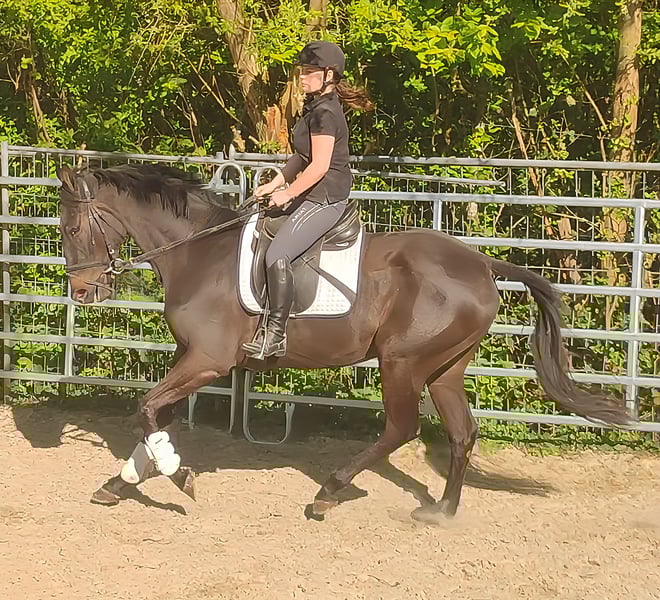 Obelix est un magnifique hongre noir-brun d'environ 4 ans et mesurant 1,68 m, qui se montre très à l'aise à cheval. Facile à mettre en selle et très agréable à monter, il se révèle être un compagnon très prometteur malgré son jeune âge. Il a été monté sans problème par des jeunes filles. Amical avec ses congénères et s’intègre rapidement dans une nouvelle troupe. Son caractère ouvert et joueur rend Obelix tout simplement attachant. Possibilité de reprise et de transport. Sur demande, il peut être vendu avec un équipement complet neuf, moyennant un léger supplément. Une inspection vétérinaire d’achat peut également être réalisée par votre propre vétérinaire, incluant radiographies et analyses de sang. Pour toute demande, merci de contacter uniquement par téléphone au 015172059610. Les demandes écrites ne seront pas répondues.