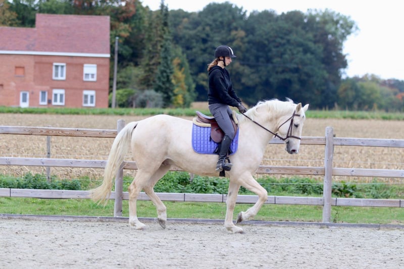 ✨ Unique color, unique size! 🐴 Breed: Irish Sport Horse 📏 Height: 16.1 hh 📅 Age: 4 years 💪 Build: very broad and sturdy - Well-behaved under saddle but still green in training. - Walk and trot are well-established; he moves nicely relaxed at the lower gaits. - Canter needs a bit more stability. - Extremely gentle in handling — a real cuddly teddy bear 🥰 (would crawl into your pocket!). - Gets along well with other horses both in the arena and in the pasture. This handsome gelding, due to his age and build, is not suitable for a beginner rider but has enormous potential for someone with some experience. Ideal for someone looking for an eye-catcher that is still fully customizable! 📞 More info: +32 475 68 22 43 🎥 For videos: ask for our website.