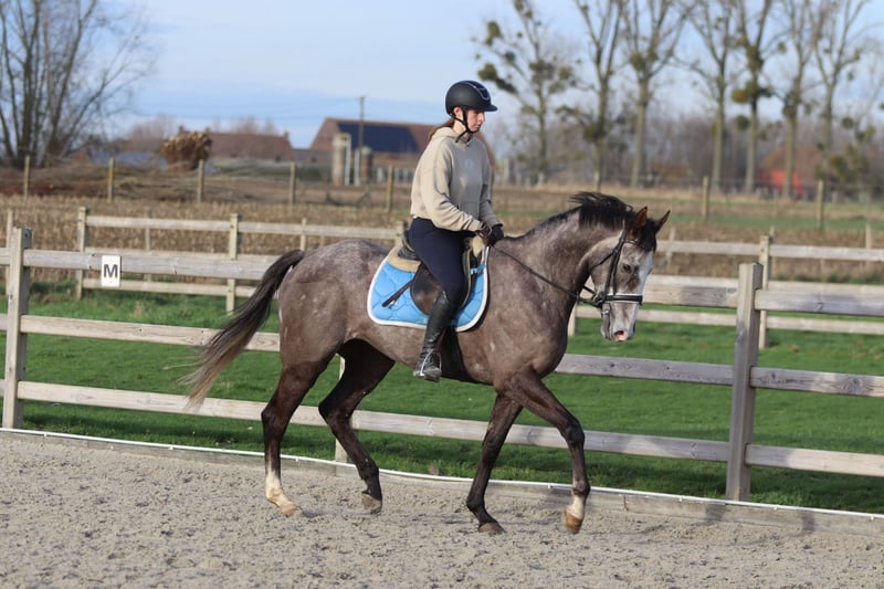 Edin – Athletic Grey Gelding, 4 Years Old (Approximately 16.1 hh) Edin is a beautiful, athletic grey gelding aged 4 years, standing around 16.1 hands high. He is calm and gentle in nature, and is easy to handle, groom, and saddle. Under saddle, Edin is straightforward and pleasant to ride, with a sporty attitude. He easily jumps courses of 70–80 cm and is neither spooky nor fearful. This makes him suitable for both an ambitious rider and someone looking for a reliable, well-trained horse to further develop. Edin is a striking appearance, correctly built with everything in the right place. He is also easy to transport. 📞 For more information? +32 475 68 22 43 🎥 Videos available – feel free to ask for our website.
