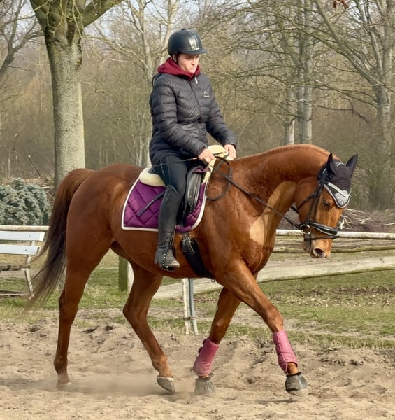 Schweren Herzens suche ich für meinen besonderen Herzenswallach Jacky ein liebevolles neues Zuhause. Leider aus Zeitmangel abzugeben . Jacky ist ein 4-jähriger Vollblut, irischer Sportpferd-Wallach, ca. 168 cm groß und ein wunderschöner Fuchs. Sein größter Schatz ist jedoch sein unbezahlbarer Charakter: Er möchte seinem Menschen gefallen, arbeitet motiviert mit und ist unglaublich lieb, sensibel und verschmust. Nähe und Vertrauen bedeuten ihm sehr viel. ✨ Ausbildung Bis Mitte 2025 Dressur E-A Niveau. Nach längerer krankheitsbedingter Pause befinden wir uns seit Dezember 2025 wieder/immer noch im Aufbau. Aktuell ist Wichtig: Muskelaufbau, Gleichgewicht usw. was aber schnell geht, da er das ja alles schon konnte. - Seit Januar 2026 wieder unter dem Sattel, problemlos. - Longiertraining ohne Schwierigkeiten, - lahmfrei in Schritt, Trab und Galopp Er kennt: longieren, ausritte (alleine so wie in einer großen Gruppe), springen,- Kinder, verschiedene Tiere, Traktoren, Busse usw. Ohne Probleme 🩺 Gesundheit Mitte 2025 Kniegelenksentzündung hinten (behandelt) sowie vorne Osteosynthese mit Zugschraube im Fesselgelenk. Aktuell lahmfrei, schmerzfrei und unauffällig im Training seit Dez. 2025. Laut Klinik sollte Springen vorerst nicht eingeplant werden. Seit Dezember 2025 haben wir das GO von der Klinik, Jacky wieder anzutrainieren. (Problemlos) ❤️ Wunschzuhause Offenstallhaltung, Wallachherde, ruhige und sensible Hand sowie Menschen, die ihn weiter fördern und ihm viel Liebe und Zeit schenken. Jacky baut eine enge Bindung zu seinem Menschen auf – deshalb ist mir ein passendes Zuhause wichtiger als alles andere. 📍 Weitere Infos, Videos oder Kennenlernen gerne auf Anfrage. 13159 Berlin Nur in allerbeste und erfahrene Hände abzugeben.
