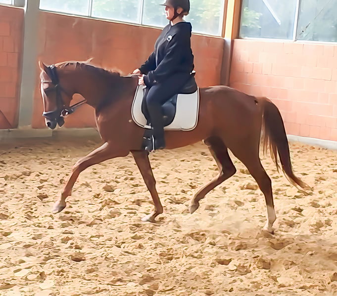 A 4-year-old gelding with a movement like walking on clouds. Very lively and dynamic, yet easy to sit with elastic back activity. Easy to position in the bridle. A horse that eagerly embraces everything new and is always "on the job." Interesting for dressage or elevated leisure sports. He also knows how to impress when jumping. If needed, he can be sold with a complete new set of equipment for a small additional cost. Trade-in is possible. Transport can be organized. A veterinary pre-purchase examination can also be conducted by your own veterinarian, including X-rays and blood tests. We look forward to your call at 01774289729. Written inquiries will not be answered.
