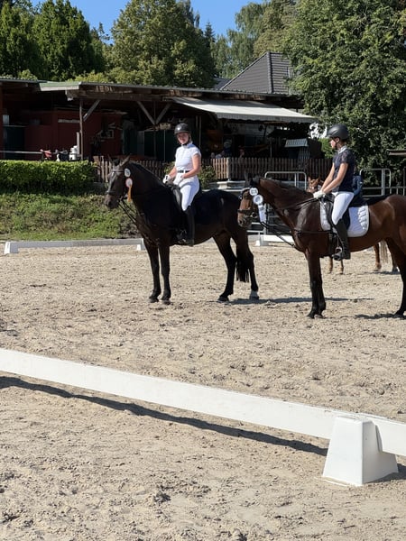 With a heavy heart, I have decided to sell my beautiful black gelding Arkan. He is 4 years old and approximately 1.62m tall. Arkan is great for taller riders as well. He loves going out on trail rides and is very well-behaved. In dressage, he learns more every day and is easy to ride. He also enjoys pole work and can jump a few obstacles as well. So he is basically a little leisure all-rounder or suitable for small competitions. He has already participated successfully, shown strong and kind nerves, and even won a competition. Arkan loads well, goes to the farrier regularly, and just had a visit from the dentist. Arkan is very robust and loves being outside. He will only go to a good home if everything fits.