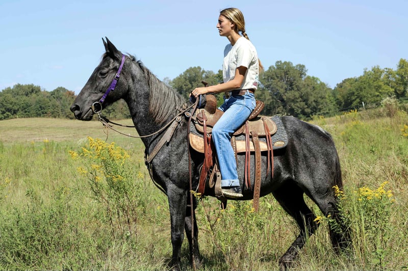Indigo Indigo is a 12 yr old 14.2 hand grade blue roan gaited mare. Indigo has mainly been used as trail mount in the past for a 73 yr old man and 14 yr old girl. She is super gentle, would prefer to walk all day but has an amazing natural gait when asked, will lead or follow and can ride with gaited or quarter. Easy to lead and load. She stands for saddling, vet, farrier and mounting. She’s good around dogs, goats, vehicles, side by sides and the occasional pool float. Please PM for more information. Asking 6,5xx. UTD on everything! PPE welcome at buyers expense. Located in Sedalia, KY