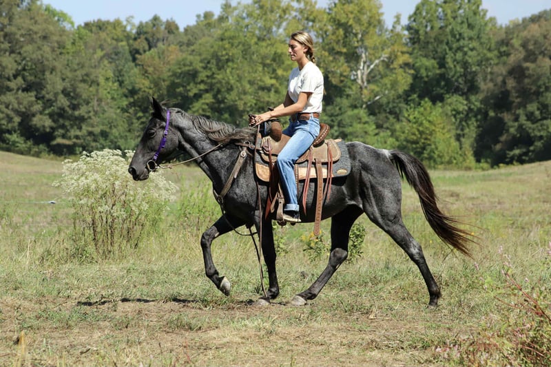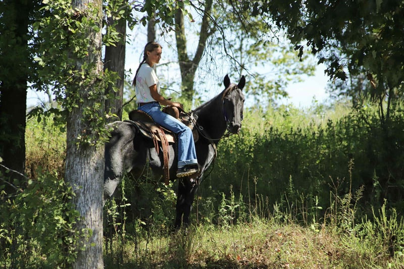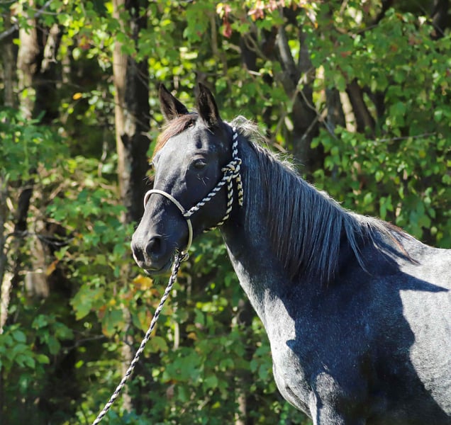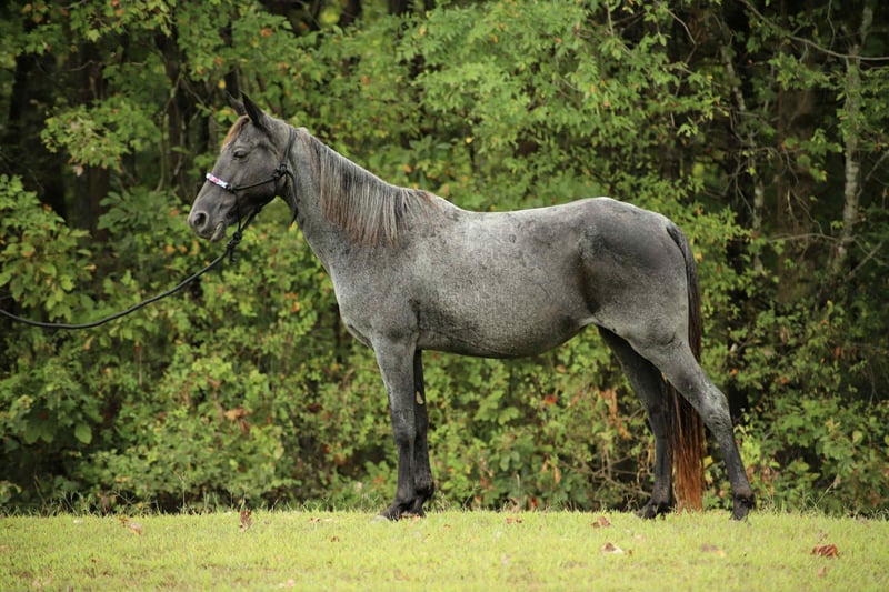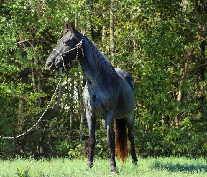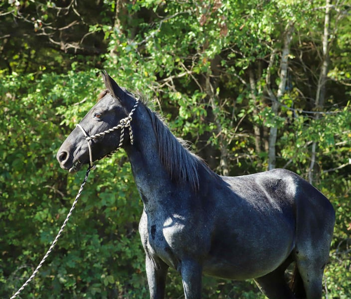 Indigo Indigo is a 12 yr old 14.2 hand grade blue roan gaited mare. Indigo has mainly been used as trail mount in the past for a 73 yr old man and 14 yr old girl. She is super gentle, would prefer to walk all day but has an amazing natural gait when asked, will lead or follow and can ride with gaited or quarter. Easy to lead and load. She stands for saddling, vet, farrier and mounting. She’s good around dogs, goats, vehicles, side by sides and the occasional pool float. Please PM for more information. Asking 6,5xx. UTD on everything! PPE welcome at buyers expense. Located in Sedalia, KY