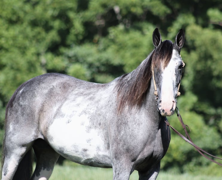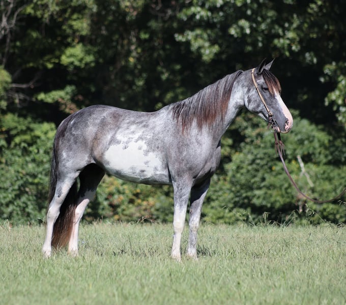 ONLINE AUCTION Place your bids at www.PlatinumEquineAuction.com Starting Bid $3500 Auction ends September 28th, 2025 Need a new saddle? Check out White Rock Saddles on our website or Facebook May Belle is a horse of a different color!! She is a beautiful 12-year-old Tennessee Walking Horse mare standing at 15 hands high. She has been on numerous camping trips, including to Big South Fork in Tennessee, where she has mastered rough, rocky trails and handles herself with ease. From steep slopes to deep creeks, downed trees, and rugged terrain, May remains sure-footed and reliable. She’s also been ridden in traffic and is entirely safe around cars, semis, logs, and dump trucks. If you’re looking for a smooth ride, May’s true 4-beat gait is a dream for anyone to enjoy without straining their back. Not only does she have the looks, but she’s also got the moves! May does well in a mixed herd and has a fantastic attitude, no matter what you ask of her. For any questions, feel free to call Trevor Patrick 606-516-8069. Located in Parker’s Lake, KY. ONLINE AUCTION Place your bids at www.PlatinumEquineAuction.com Starting Bid $3500 Auction ends September 28th, 2025 Need a new saddle? Check out White Rock Saddles on our website or Facebook