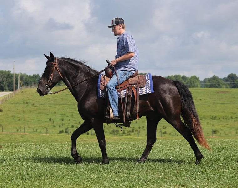 ONLINE AUCTION Place your bids at www.PlatinumEquineAuction.com Starting Bid $3500 Auction ends June 23rd, 2024 Need a new saddle? Check out White Rock Saddles on our website or Facebook! Dodge is a SUPER STOUT built 15.1hh, 10 yr old, Black Gelding and man oh man isn’t he a sharp looker? With that jet black color, he is dressed for a night out on the town, WOW he is a looker! I bought Dodge from some local folks who had owned him for 4 years. He has been trail ridden in several states, been ridden downt he highways and though town. Hes even been tied up at the hitching post at the local store while they went inside. Dodge has a natural 4-beat gait that is very smooth at all speeds for any rider. He has been ridden around farm equipment, ATV’s, and around noisy tarps. On the trails he is always great! Dodge has been exposed to all kinds of wildlife such as deer or turkey or other animals like cows or dogs and will go anywhere that he is asked too. He has been rode many miles in the mountains of Eastern Kentucky and encountered every obstacle possible on the trail. He will go up or down even the steepest slopes, across deep creeks, over downed trees, and over all types of rough terrain while still being sure footed. He has been rode in traffic, and is very traffic safe around cars, semi, log, and dump trucks. He has a great personality and a great attitude about whatever he is asked to do. Feel free to call Trevor Patrick 606-516-8069 with any questions. Located in Parkers Lake, KY. ONLINE AUCTION Place your bids at www.PlatinumEquineAuction.com Starting Bid $3500 Auction ends June 23rd, 2024 Need a new saddle? Check out White Rock Saddles on our website or Facebook!