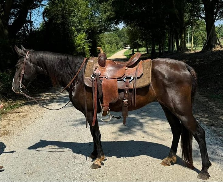AVAILABLE ON ONLINE HORSE AUCTION AT www DOT MagicHorseAuction DOT com BIDDING OPEN NOW thru TUESDAY | MAY 13th - BUY IT NOW AVAILABLE! *Final price will be determined on auction site* CONSIGNOR CONTACT INFO: Southern Performance Horses 706-963-9251 LOCATION: Carnesville, GA " King jimmy Stop and read this boy is unreal! 14.3 hand 15 year old gelding small and gentle enough for children but big enough for adults. King jimmy is sweet on the ground and loves attention, baths, grooming, the farrier and being dabbled over! I trust him with my children and any beginner adults. If you are off balance he will stop till you are ready to move on, taking the lead or bringing up the rear is fine with this guy. Out in the pasture this guy never makes a peep he can be turned out with anyone or even live alone. King Jimmy respects all fence and also respects your space! This boy is smooth as butter, and has more whoa then go but does move when asked, he has clean legs excellent hooves and a very sweet demeanor. Jimmy is ready for his new home and is ready for miles of trails toting young kids or beginners adults. Jimmy is excellent about coming in the barn at feeding time he goes right to his stall and has no rude or bad habits. Jimmy loads on the trail beautifully and unloads very gentle and slow. We have had Jimmy turned out in one strand nylon electric wire and also regular pasture fence and he’s respectful to both. Jimmy is very well broke with a big stop like a quarter horse and he will neck rein beautifully. Jimmy has been on wagon trains and has taken his riders on many miles of trails even up in the mountains. He’s very safe! We have also used him as a companion for young horses, or when weaning foals and he’s gentle and sweet to everyone he is not dominant in any way! Anyway Feel free to reach out to us with any questions regarding Jimmy or help finding shipping. We are more than Happy to help find a shipper that meets your needs.