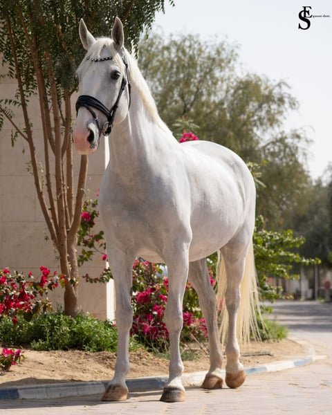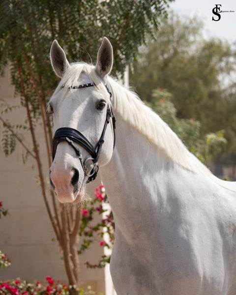 Elegant German Sport Horse Mare Available for Sale Discover the grace and versatility of this stunning German Sport Horse mare, born in 2013. Standing at 163 cm, she boasts a striking white coat that captures attention and reflects her exceptional quality. With her refined build and athletic prowess, she is ideally suited for dressage and is eager to excel in the arena. This talented mare combines her impressive movement, trainability, and calm demeanor, making her a wonderful partner for both competitive riding and dedicated training. Whether you're aiming for the show ring or enjoy riding for pleasure, she offers a perfect blend of elegance and performance. Don't miss the opportunity to own this remarkable dressage prospect. For more information and to arrange a viewing, please contact us. Worldwide shipping available Located in Dubai, UAE