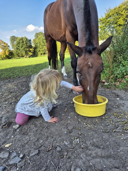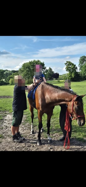 **Verkaufsanzeige: Kleines Deutsches Reitpferd** Zum Verkauf steht ein charmantes kleines Deutsches Reitpferd (Wallach, geb. 2010) in einem wunderschönen braunen Fell. Mit einem Stockmaß von ca 160 cm ist er der ideale Partner für Freizeitaktivitäten. Unser Wallach ist ein ausgeglichener und freundlicher Begleiter, der sich sowohl für erfahrene Reiter als auch für Wiedereinsteiger eignet. Er liebt es, im Gelände unterwegs zu sein und zeigt sich dabei stets brav und zuverlässig. Er kennt landwirtschaftliche Fahrzeuge aller Art, sowie Hunde und Kinder. Blitz ist ein offener Wallach der immer gefallen möchte. Er geht alleine ins Gelände. Früher wurde er öfter gesprungen, was ihm auch immer Spaß gemacht hat. Die Tunierumgebung ist ihm zwar bekannt, war aber immer sehr stressig für ihn. Er ist gut erzogen, im Umgang unkompliziert und hat einen freundlichen Charakter. Ob beim Ausreiten, in der Halle oder beim Bodenarbeit – er macht immer eine gute Figur und begeistert durch seine Lernbereitschaft. Wenn Sie auf der Suche nach einem treuen Freizeitpartner sind, der Ihnen viele schöne Stunden im Sattel bescheren wird, dann melden Sie sich gerne für weitere Informationen oder einen Besichtigungstermin. Wir freuen uns auf Ihre Nachricht!