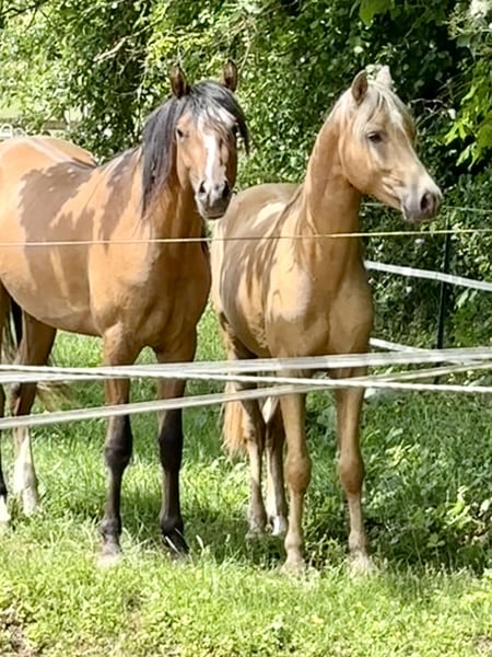 Caro's Sir Toffee was intentionally bred from our Holsteiner mare by Big Star x Lux Z in combination with the proven Welsh B stallion Cadlanvalley Sir Ivenhoe, as the mare was unable to carry a warmblood foal as her first offspring due to an injury. Top Holsteiner show jumping genetics from the former world champion of show jumping horses, Big Star, are combined here with the cleverness and beautiful color of Sir Ivenhoe! Not only is he an exciting option for pony breeders for this year's pony licensing, but if gelded, he could also be an absolute future show jumping pony offer in the special color Palomino! Currently, Sir Toffee is about 1.43 m tall and will very likely remain within the pony height. This is why we have to part with him with a heavy heart, as we expected him to grow to around 1.55-1.60 m, which is not the case. Sir Toffee is very correct in conformation, is halter-trained, vaccinated, regularly seen by the farrier, and has been raised with us since foaling in a small group in a year-round open stable. He has decent basic gaits, with the canter being particularly noteworthy. Character-wise, he is a very sweet guy and will certainly become an excellent sport/kids and family pony. His sire, Cadlanvalley Sir Ivenhoe, has proven to be a significant sire for sport ponies in all disciplines with excellent temperament over the past few years - especially in combination with warmblood mares! We will only sell him to a 100% suitable and sport- and/or breeding-promoting home. Come by and see him live! Please, no countless inquiries about the last price and numerous videos. He is growing up in a species-appropriate manner and therefore has not yet been worked or free-jumped!