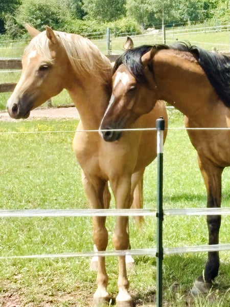 Caro`s Sir Toffee geb. 2023 haben wir selbst aus unserer holsteiner Stute v. Big Star x Lux Z aus 1,50 m erfolgreichem Stamm bewußt in Kombination mit dem bewährten Welsh-B Hengst Cadlanvalley Sir Ivenhoe gezogen, da die Stute verletzungsbedingt kein Warmblutfohlen als Erstling austragen sollte. Mutter: Halbbruder erfolgreich in 1,50 m! https://www.horsetelex.de/horses/pedigree/2067514/my-miracle-star-c Top holsteiner Springgenetik vom ehemaligen Weltmeister der Springpferde Big Star sind hier vereint mit der Pfiffigkeit und tollen Farbe des Sir Ivenhoe! Nicht nur für die Vorstellung zur diesjährigen Ponykörung eine spannende Option für Reitponyzüchter, sondern ggf. kastriert eine absolute zukünftige Springponyofferte noch dazu in Sonderfarbe Palomino! Erstes Freispringen zeigt hervorragende Technik und Vermögen, daher können wir ihn uns auch als Springpony für das BUCHA der kommenden Jahre vorstellen. Aktuell ist Sir Toffee ca. 1,45 m groß und frisch kastriert , wird somit sehr sicher im Ponymaß bleiben. Dies ist der Grund weshalb wir uns sehr schweren Herzens von ihm trennen müssen, da wir erwartet haben dass er um die 1,55-160 m groß werden wird, was nicht der Fall ist. Sir Toffee steht sehr korrekt, ist halfterführung, geimpft, regelmäßig dem Hufschmied vorgestellt und wächst bei uns seit Fohlen in einer Kleingruppe im Offenstall ganzjährig auf. Er verfügt über ordentliche Grundgangarten, wobei der Galopp natürlich hervorzuhegen ist. Charackterlich ist er ein ganz lieber Kerl und wird mit Sicherheit ein hervorragendes Sport-/Kinder- und Familienpony werden. Vater Cadlanvalley Sir Ivenhoe hat sich in den letzten Jahre zu einem bedeutenden Vererber für Sportponys in allen Sparten mit hervorragendem Interieur bewährt - auch insbesondere in Kombination mit Warmblutstuten! Wir geben ihn nur in 100% passendes und sportlich oder/und züchterisch förderndes Zuhause ab. Aktuelle Röntgenbilder ohne Befund liegen vor! Kommt vorbei und schaut ihn euch live an! Bitte nicht tausend Anfragen nach letztem Preis und zig Videos. Er wächst artgerecht auf und daher ist er natürlich noch nicht gearbeitet!