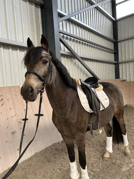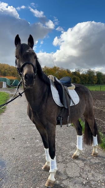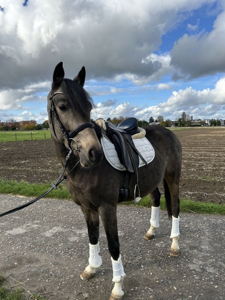 Unser hübscher, ca. 1,53 m großer 4-jähriger Wallach sucht ein liebevolles Zuhause, in dem er weiter gefördert und ausgebildet werden darf. Er ist seit Anfang des Jahres unter dem Sattel und zeigt sich dabei immer brav, ehrlich und bemüht – ein echtes Verlasspferd in Ausbildung! Sowohl beim Reiten als auch im täglichen Umgang ist er zu 1000 % zuverlässig und macht einfach Freude. Dodo, lässt sich gelegentlich noch etwas von seiner Umwelt ablenken, bleibt dabei aber stets lieb, gut händelbar und bemüht, alles richtig zu machen. Sein Herz schlägt für Menschen – er ist unglaublich verschmust, aufmerksam und liebevoll, dabei ist er respektvoll im Umgang. Wir wünschen uns für ihn ein Zuhause, in dem er weiterhin mit Geduld, Liebe und Freude lernen darf. Durch seine Qualität bringt er die besten Voraussetzungen mit, um sich zu einem tollen Sportpartner und Freund fürs Leben zu entwickeln. Ein TÜV ist noch nicht vorhanden. Bei ernsthaftem Interesse freuen wir uns über eine Nachricht und ein persönliches Kennenlernen!
