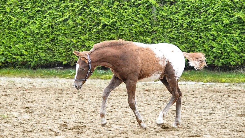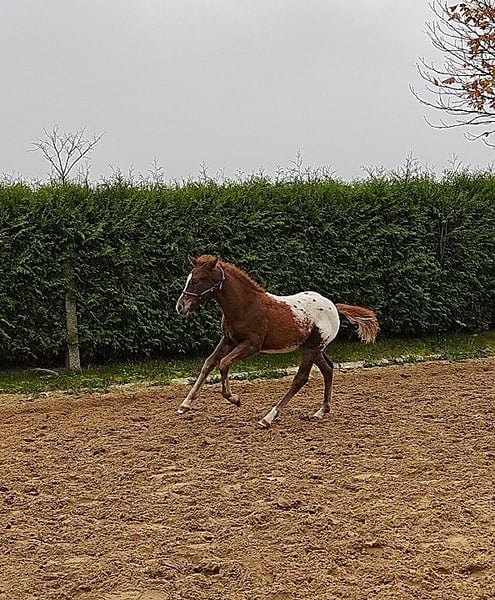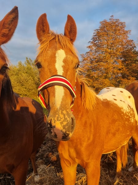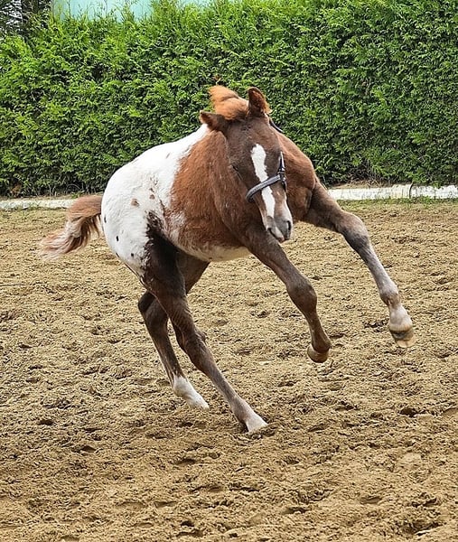 Hallo Verkaufe hier meinen Junghengst Spotted Diabolo, er ist geimpft und gechippt, Pass wurde gerade beantragt. Die Farbe nennt man Fuchsschabrack- Tigerschecke, allerdings ist er mehrfarbig (diverse Brauntöne, sowie teilweise schwarz). Es ist möglich, dass er das "Roan-Gen" in sich trägt, da die Mama getesteter Roan ist (nicht weiter bei Spotti getestet). Spotti ist sogar Farbwechsler, im Sommer ein heller Fuchs und im Winter ist er ein Dunkelfuchstiger. Er läuft als Freizeitpferd (ohne Ahnenpass). Spotti wird wie seine Eltern um die 1,55m +/- 3cm. Der kleine Hengst verfügt über schöne Gänge, ein gutes, stabiles Fundament und einen ehrlichen Charakter. Aufgrund des jungen Alters wird definitiv noch Erziehung benötigt, dabei sollte man liebevoll und konsequent sein. Er möchte regelmäßig gearbeitet werden. Für ein Leckerli macht er sehr viel. Seine Mutter ist ein schweres Warmblut (o.P.) und der Vater ein Knabstrupper (o.P.), beide sehr gute Springer. Der Opa von dem Kleinen ist Knabstrupper Olaf (Showpferd auf Facebook). Falls Interesse besteht gerne melden. LG Die Abgabe erfolgt aufgrund von Bestandsverkleinerung und Zeitmangel
