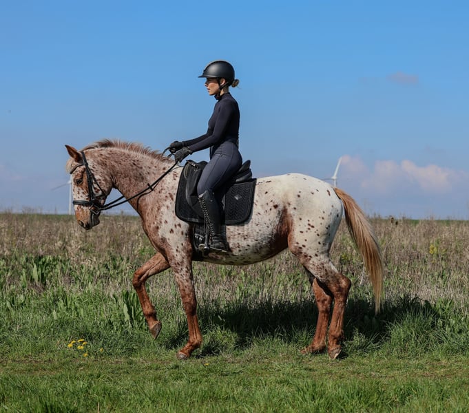 4-jährige Stute in besonderer Farbe – brav im Gelände, fein zu reiten Beschreibung: Zum Verkauf steht eine 4-jährige Stute in attraktiver Sonderfarbe mit einem altersentsprechenden Ausbildungsstand. Sie ist in allen drei Grundgangarten geritten und zeigt sich dabei lernwillig. Ihr bisheriger Schwerpunkt liegt im Gelände – hier überzeugt sie mit großer Gelassenheit und Zuverlässigkeit. Auch längere Ausritte sowie Wanderritte sind ihr bestens bekannt. Im täglichen Umgang ist sie ein absoluter Schatz: * sehr menschenbezogen * brav beim Schmied * problemlos beim Verladen Unter dem Sattel zeigt sie sich fein und sensibel. Bei zu viel Druck oder Unsicherheit kann sie noch etwas antesten und reagiert schnell überfordert – mit ruhiger, klarer und gefühlvoller Reitweise lässt sie sich jedoch sehr gut arbeiten und entwickelt sich stetig weiter. Daher wünscht sie sich einen Reiter mit Feingefühl und Erfahrung. Für Anfänger ist sie nicht geeignet. Insgesamt ein ehrliches Pferd mit viel Potenzial, besonders für Freizeitreiter mit Anspruch an ein sensibles, gutmütiges Pferd für Gelände und weitere Ausbildung. Hinweis zum Probereiten, Sie kann gerne vorgeritten werden oder es kann gemeinsam ein Ausritt ins Gelände gemacht werden. Da sie mit vielen wechselnden Reitern nicht gut zurechtkommt, möchten wir ihr unnötigen Stress ersparen. Bei weiteren Fragen stehe ich gerne zur Verfügung.
