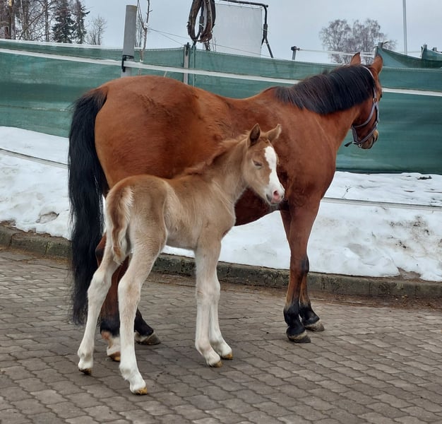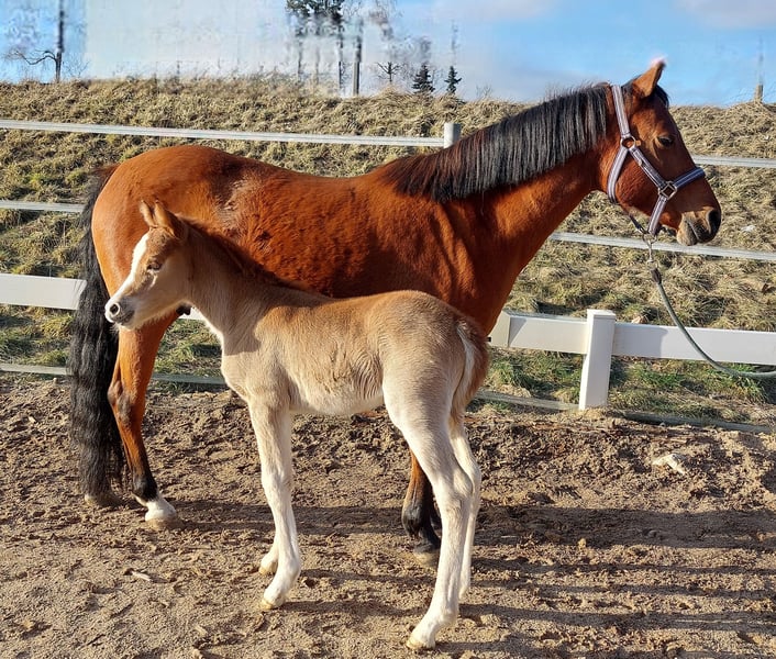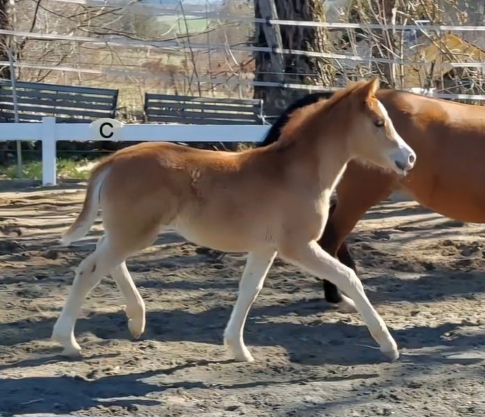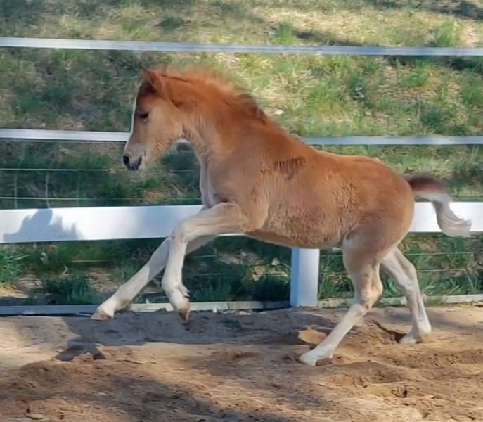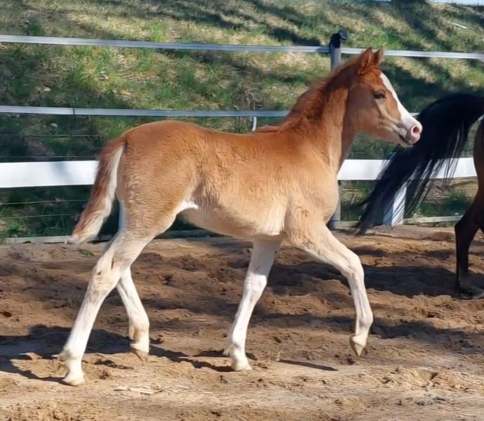 WüPie's LILLIFEE - geb. 07.02.2026 - wird beim ZfdP als Knabstrupper(pony) eingetragen - einfarbig Fuchs - stabiles Modell, ein sehr selbstbewusstes Stutfohlen mit viel Charme und Witz - gut proportioniert mit 3 bestens geregelten GGA, kraftvoll und bewegungs freudig, dabei mit einer elastischen Grundbewegung, die keine Wünsche offen lässt. Aus dem Zuchtjahrgang 2026 bieten wir direkt aus Züchterhand (ZfdP Zuchtstall) ein einfarbiges Knabstrupper Stutfohlen zum Verkauf (kann nach dem Absetzen im August/September ausziehen) in wertschätzende, fördernde und vor allem erfahrene Hände. Geschätztes Endmaß ca um die 140 cm +/-. Unsere LILLIFEE, überzeugt sofort mit ihrer frechen kecken und neugierigen Art und dem dazu passendem liebenswertem Wesen. Sie ist ein stabiler Typ mit viel Go, die man sich später evtl auch gut vor der Kutsche, im gehobenen Freizeitbereich oder kleinerem Sportbereich vorstellen kann. Sie hat ein wunderbar feines Gesicht und bewahrt immer einen klaren Kopf, egal in welcher neuen Situation. Sie überzeugt mit ihrer Neugier, gepaart mit dem richtigen Temperament, ihrem Auftreten und Präsenz, vor allem aber ihrem freundlichen und ehrlichen Wesen wenn sie einen mit einem freudigen Wiehern begrüßt und sich auf ihre Krauleinheiten freut. Sie ist total Menschen bezogen und wächst bei uns mit Familienanschluss auf, total lieb und lässt sich liebend gern putzen. Hufe heben, auskratzen oder gar beim Hufschmied gibt es überhaupt keine Probleme. Halfter kennt sie mittlerweile und wird bis zu Abgabe natürlich gut zu führen sein. Außerdem bekommt sie mehrfach Mineralien/Vitamine verabreicht die Fohlen benötigen u.wird entwurmt. Unsere junge Dame bringt Vieles mit, um später Spaß und Erfolg im gehobenen Freizeitsport od. kl. Sportbereich zu haben. Das perfekte Kinder und Familienpony, auch für kleinere Erwachsene gut geeignet. Ihre Mutter LOUISE - beim ZfdP mit 7er und 8er Noten eingetragen - eine braune Reitponystute (o.A) mit ca 140 cm. Ihr Bewegungsablauf ist taktvoll, geregelt und raumgreifend. Sie ist eine aufgeweckte, anständige und treue Stute mit einem wunderbarem Charakter, ehrl. u. liebenswert. Ihren klaren Kopf und einwandfreien Charakter bewies sie schon in jungen Jahren, als sie noch Anfänger Kindern und Jugendlichen das Reiten lernte. Ebenso ging sie brav bei Umritten mit, lässt sich dabei immer problemlos verladen und händeln. Mit ihr hat man sowohl auf dem Platz/i.d Halle od. im Gelände Spass. Diese vielseitige Veranlagung gibt sie stets an ihre Fohlen weiter. All ihre Fohlen sind bisher immer als Prämienfohlen eingetragen worden und bereiten ihren Familien viel Freude in den unterschiedlichsten Sparten. Der Vater 'VIRGIL AF DUTTERUP' ist unser eigener KnabstrupperPony LeistungsHengst, geb.08.04.09, Braun-Tigerschecke, 139cm > V: Timon af Lille Hav > MV: Sokrates af Mesballe Gekört ist er in Dänemark beim KNN, Leistungshengst - HLP 2Tages Kurzprfg.in Ansbach 2014 *** Auf der Intern. Ponyschau des Ponyzuchtverbandes Ndb/Opf 2024 konnte 'VIRGIL' den Titel 'Gesamtreservesieger' mit nach Hause nehmen, zusätzl. wurde er beim ZfdP Championat Ba-Wü 2024 als würdiger Vertreter seiner Rasse prämiert. *** Dieser Hengst besticht mit seiner auffallenden Optik in Rasse typischer Tigerscheckung und einem starken Fundament. Sein Schritt ist stets fleißig mit Raumgriff, sein Trab ist mit leichter Knieaktion und Schwung ausgestattet, die Galoppade ist immer energisch, dynamisch durchgesprungen. Am Sprung im Freispringen behält er die Übersicht, überzeugt mit einem enormem Springvermögen und ist immer fleißig mit Freude bei der Arbeit. Sein ausgeglichenes Temperament, seine Freundlichkeit und ein klarer Kopf machen ihn zum zuverlässigen, coolen und charmanten Partner im Alltag und für die ganze Familie. Er ist sehr Menschen bezogen, achtet vorsichtig auf Kinder, möchte immer gefallen und sein ausgezeichneter Charakter macht ihn im Umgang unkompliziert und liebenswert. ° Sporliche Erfolge 2025 von VIRGIL AF DUTTERUP ° : - Sieger im Freilauf und Freispringwettbewerb mit je über 8,5 beim ZfdP Freilauf/Freispringcup Niedersachsen - Zweit platziert im Freispringwettbewerb mit wieder 8er Noten beim ZfdP Freispringcup in Schleswig-Holstein - Klassensiegerhengst auf der Internat. Ponyschau 2025 WüPie's LILLIFEE (und beide Elternteile) können natürlich gerne bei uns 'WüPie - Pferdezucht' in Oberfranken, Standort 95119, besichtigt werden. *Aus dieser Anpaarung vom letzten Jahrgang, wurde die Vollschwester 2025 als Sieger & Championatsfohlen ausgezeichnet* >> also sichern Sie sich jetzt schon rechtzeitig ein tolles und einzigartiges Familienpony zum super Preis, bevor dieser mit kommenden Vorstellungen auf Schauen und nach der Eintragung steigt ! Bei Interesse, Fragen od Terminvereinbarung zur Besichtigung schreiben Sie uns gerne an - 0176/21174148 für WhatsApp, wir freuen uns auf Sie.