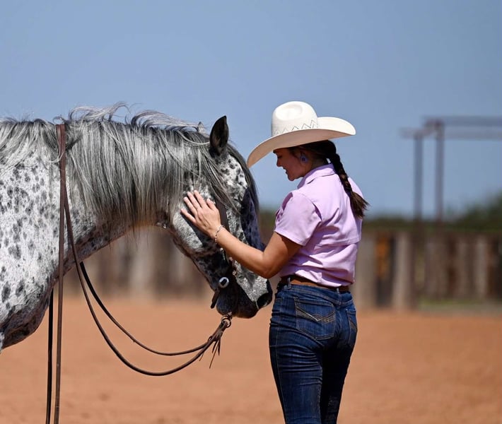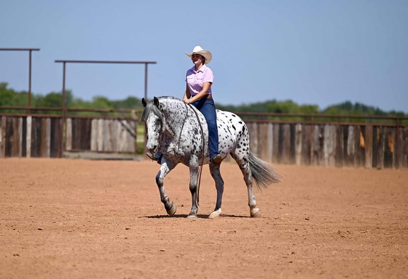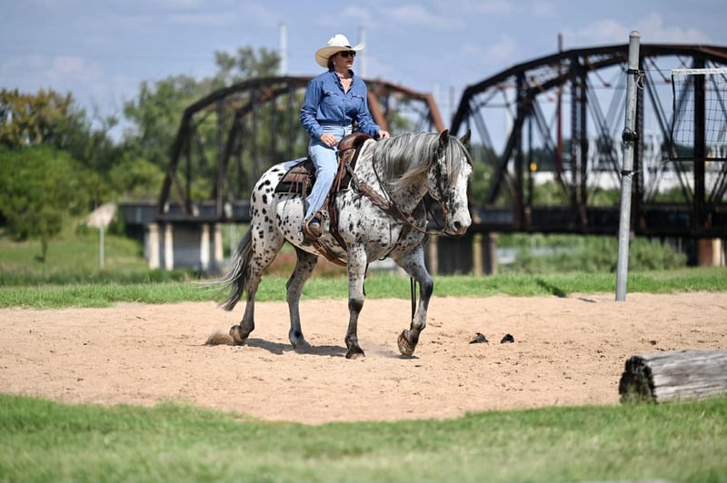 🍁𝒕𝒉𝒆 𝐅𝐀𝐋𝐋 𝑺𝒑𝒆𝒄𝒕𝒂𝒄𝒖𝒍𝒂𝒓🍁 Happening now thru MONDAY | SEPTEMBER 22nd - Available EXCLUSIVELY on HorseBid's website! For more details and to register visit: www.Horsebid.com CONSIGNOR CONTACT: Jordan Brown 502-565-6621 LOCATION: Waco Texas BREED: Knabstrupper REGISTERED: No COLOR: Leopard Appaloosa HEIGHT: 16 AGE: 10 GENDER: Gelding If handsome and kind are at the top of your list, this is your guy!! Achilles is a magnificent 10 year old Knabstupper gelding standing a true 16 hands with a classy, unique look, tons of bone, and plenty of color!! The ultimate trail and family horse who’s been there and done that with the demeanor to suit any rider. Achilles has spent the majority of his life as a ranch mount; saddled way before daylight and most days coming in well after the sun goes back down. He has seen all types of terrain from Montana to Texas and everything in between including but not limited to: deep washes, steep mountains, thick brush, mud bogs, rivers/creeks/streams, snow, ice, wind & rain. Rides english as well! Very enjoyable to school dressage or pop over some low level jumps if you get a wild hair! Many many miles and lots of wet saddle pads have prepared him for nearly any situation you may find yourself in. He keeps a cool head and has the most forgiving and friendly disposition you could ask for. Walks out on a loose rein, has a plush jog, floating extended trot, and a rolling canter. Neck reins and moves off leg, side passes to open and close gates, crosses bridges, navigates narrow paths with ease, doesn’t mind traffic, machinery, dogs, or children. In fact he ADORES children. Stack as many as you like on him and he will gladly pack them around at a gentle walk. Terrific ground manners, an absolute dream to shoe, and loves nothing more than a good bubble bath! Easy to clip, groom, saddle, and mount. His resumé, no matter how impressive, is unmatched with his one-of-a-kind personality… this horse brightens your day everytime you come to the barn. He will greet you with a nicker from the stall or canter to the pasture gate. Not a mean bone in his body and a perfect gentleman to be around and handle in any capacity. You won’t find a horse that enjoys his job as much as this guy! No nonsense and eager to please every time you pull him out whether it’s every morning before daylight or once a month! We would love to tell you more about this phenomenal horse! Call or text Jordan at (502) 565-6621. Shipping available worldwide
