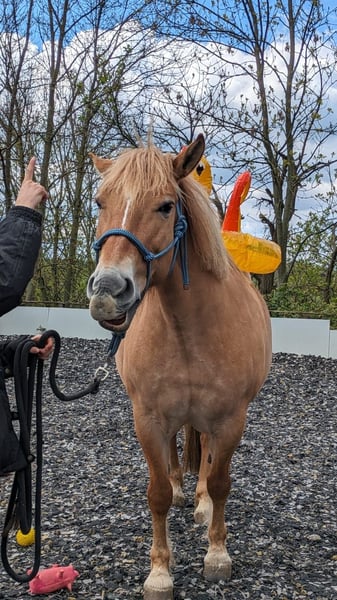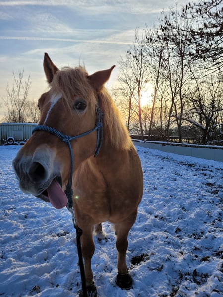 Wegen Aufgabe des Reitsports sucht meine Stute Zlota ein neues Zuhause auf Lebenszeit. Zlota ist 12 Jahre alt und seit ihrem 3 Lebensjahr in meinem Besitz. Zlota steht in einem Offenstall ohne Weidezugang in gemischter Herde. Das wünsche ich mir auch weiterhin für Sie. Ein Offenstall mit Paddocktrail oder Aktivstall wären perfekt. Zlota hatte vor 5 Jahren eine leichte Hufrehe ohne bleibenden Schaden. Sie hat EMS und seit etwa zwei Jahren im Sommer ein leichtes Sommerekzem welchen täglich mit Lotion behandelt werden muss. Aktuell läuft Zlota hinten teilweise Lahm. Der Befund des Tierarztes geht auf gelockerte Kniebänder zurück welche nur durch konsequenten Muskelaufbau gestärkt werden können. Dann stehen die Chancen gut das Zlota wieder völlig Reitbar wird. Leider fehlt mir dafür völlig die Zeit weshalb ich mich nun zu diesem Schritt entschieden habe. Zlota geht ohne Probleme alleine vom Hof benötigt aber einen Reiter der ihr Sicherheit gibt. Sie ist nicht für Kinder oder ängstliche Reiter geeignet. In der Dressur ist sie stets Motiviert und läuft gut und gerne in allen 3 Gangarten. Zlota ist in der Herde Rang hoch und übernimmt gerne mal die Führung. Generell ist sie ein sehr Selbstbewusstes Pferd. Falls ihr den Text bis hier hin gelesen habt und Intresse besteht freue ich mich über eine Nachricht.