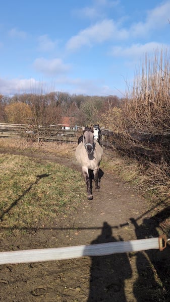 Verkaufe jungen Konik-Wallach, geb. 2021, mit einem Stockmaß von ca. 140 cm. Derzeit befindet sich das Pferd in der Ausbildung da es sich um ein zwar artiges aber sehr schreckhhaftes und sensibles Pony handelt. Mit viel Zeit, Ruhe und Geduld sicherlich am Ende ein zuverlässiger Begleiter. Verkauft wird er nur da wir diese Zeit einfach nicht haben. Er wurde beim Vorbesitzer geritten und zweispännig gefahren. Was ihm dort wiederfahren ist das er soviel Angst hat wissen wir leider nicht. Jack ist aufjedenfall sehr aufgeschlossen , artig beim Schmied und Anhänger fahren ist auch kein Problem. Der Konik ist ein robustes und vielseitiges Pony. Verkauf NICHT als Kinderpony. Bei Interesse freue ich mich auf Ihre Kontaktaufnahme.
