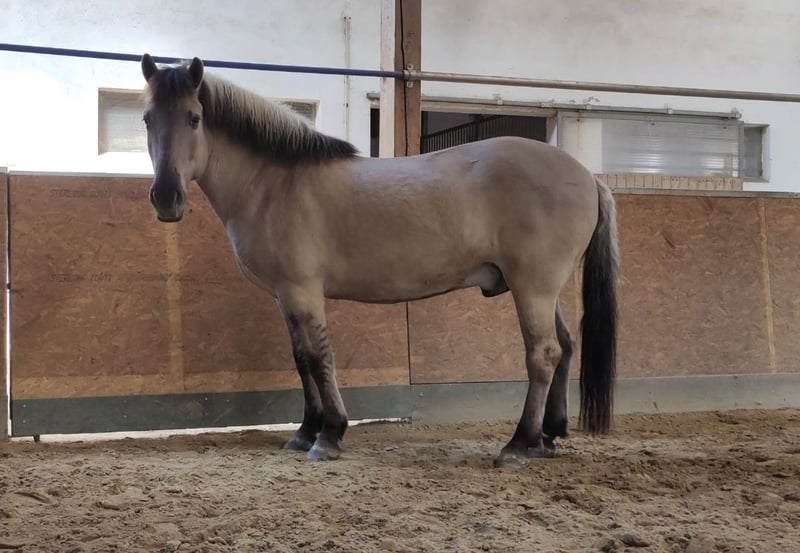 Zum Verkauf steht mein 9 Jahre alter Konik Wallach Chewie. Er ist sehr aufgeschlossen, neugierig und verfügt – ganz ponytypisch – über eine ordentliche Portion Frechdachs-Charme und ist kein Anfängerpony. Chewie wünscht sich unbedingt einen pferdeerfahrenen, feinfühligen Menschen an seiner Seite, der ihn mittels liebevoller Konsequenz durchs Leben führt und ihn weiterhin fördert. Er kennt Bodenarbeit, Longieren, Stangenarbeit und die Arbeit an der Doppellonge. Er ist in allen drei Gangarten geritten, er braucht aber eine konsequente Hand, die ihm genaue Hilfen gibt und ihn beim Reiten gut beschäftigt. Das Reiten im Gelände kennt er noch nicht, auch Spaziergänge müssen mit ihm geübt werden. Er ist gesund, läuft barfuß und lässt sich vom Schmied gut bearbeiten. Ich verkaufe ihn, da es meine aktuelle Situation (ich bin Mutter eines Kleinkindes) nicht zulässt, ihm die Zeit und Förderung zu geben, die er verdient und braucht.
