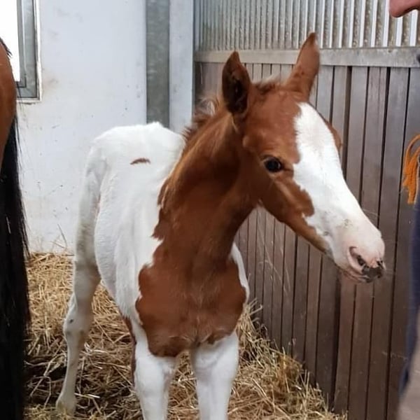 Bonanza, also known as Fullcolour van Nethe, A truly trendy color! Bonny is the only splash-registered stallion by the century-winning sire Baloubet du Rouet out of a Samico mare. He passes on the gene 50% of the time but has already sired many splash foals. He possesses an exceptional temperament, which he also passes on to his offspring. In handling, he is more like a gelding. He has covered mares in Hungary for several years, where he was very popular and sought-after. Here, too, it is rare to find offspring for sale, as they are so well-behaved, willing to work, and easy to ride. Our first foal crop was very promising, and last year he covered about 20 mares naturally. He is not particularly tall himself but tends to pass on average to tall size. Bonanza completed his HLP in 2014 in Neustadt/Dosse with a dressage-oriented final score of 8.03. He himself was up to S level and remained fit and super well-behaved to ride right up until the end. Over the past 1.5 years, we have only used him for breeding. I could also imagine him as an excellent schoolmaster in a state stud, alongside his breeding duties. Most recently, he covered mares naturally here, but he is also familiar with artificial insemination using a phantom. He covers very calmly at the stallion chain and is rather shy. Please contact via WhatsApp or call us. Numerous videos of him can be found online under his name. We will only sell him if everything fits and the asking price is paid!